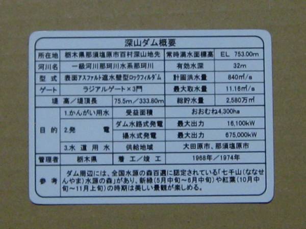 即決 栃木県那須塩原市深山ダムDAMーダムカードVer5.0(2013.4)