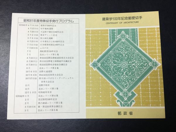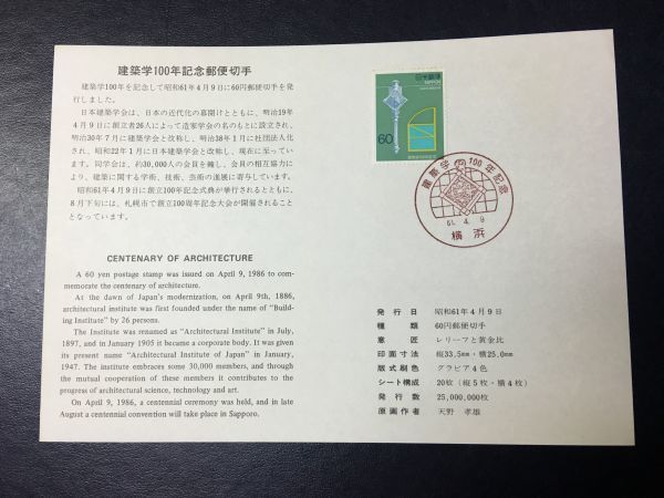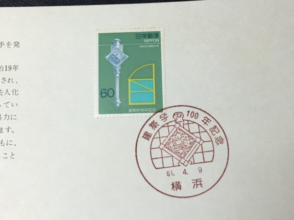 6453郵政省1986年建築学100年記念切手解説書横浜61.4.9初日印切手FDC初日記念カバー特印切手記念印切手使用済切手建物切手日本切手即決切手