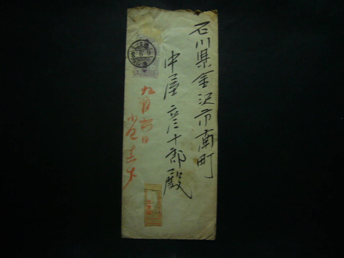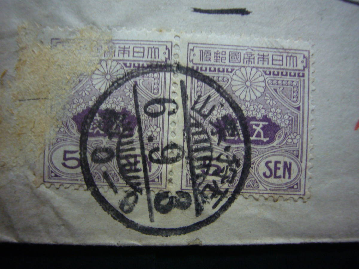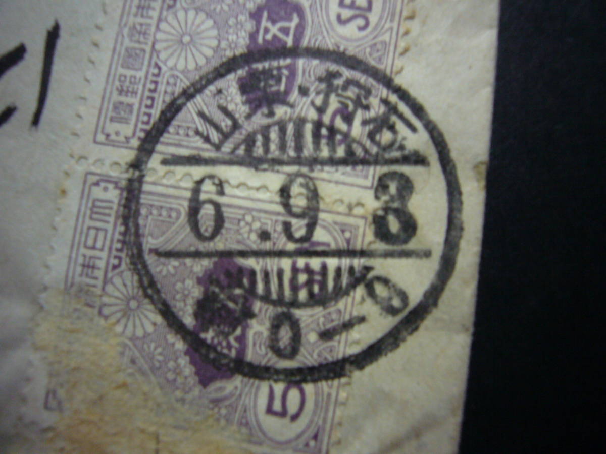 ◆エンタイヤ◆5801 旧毛5銭 ペア貼 書留便 石狩・栗山 6年 北海道