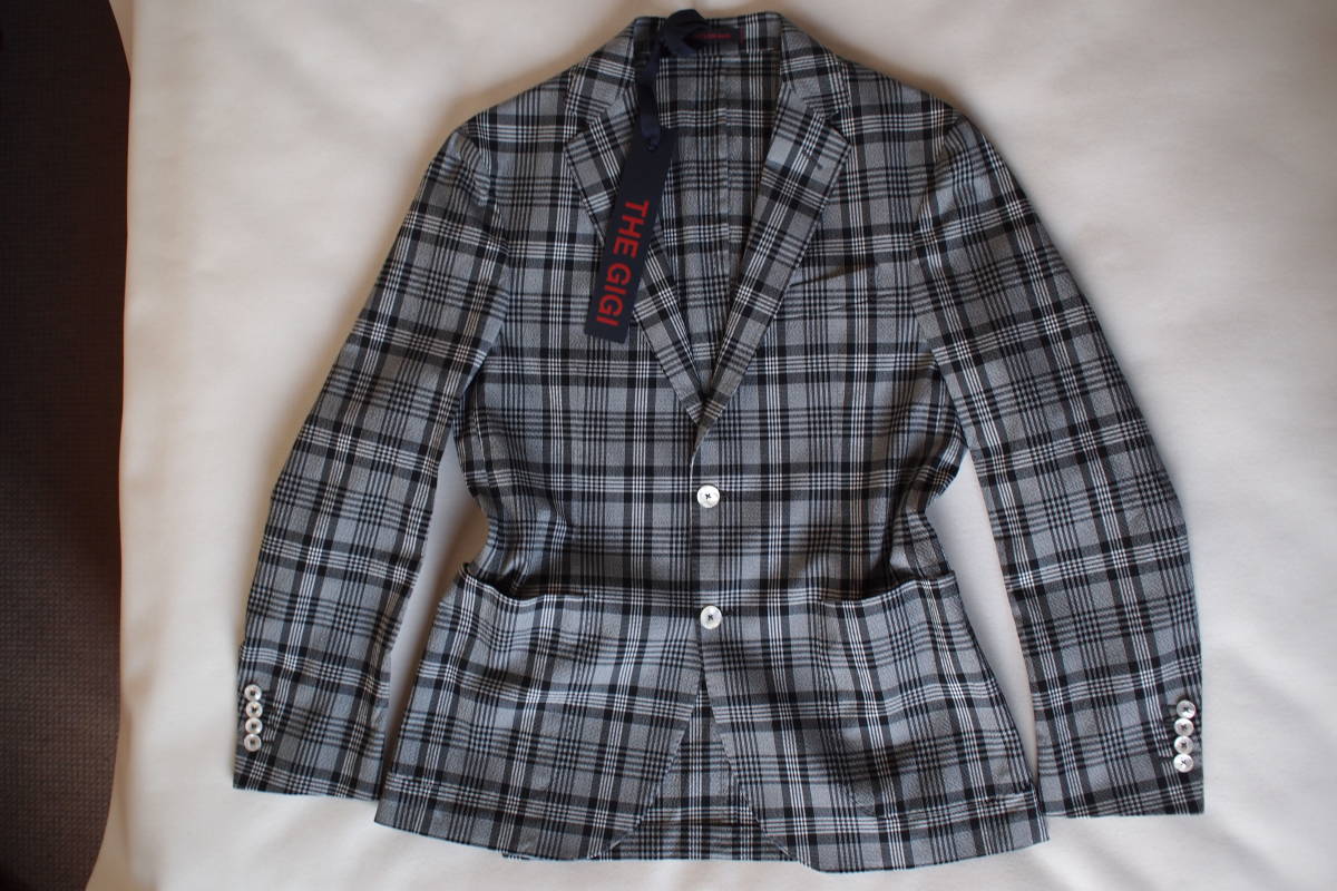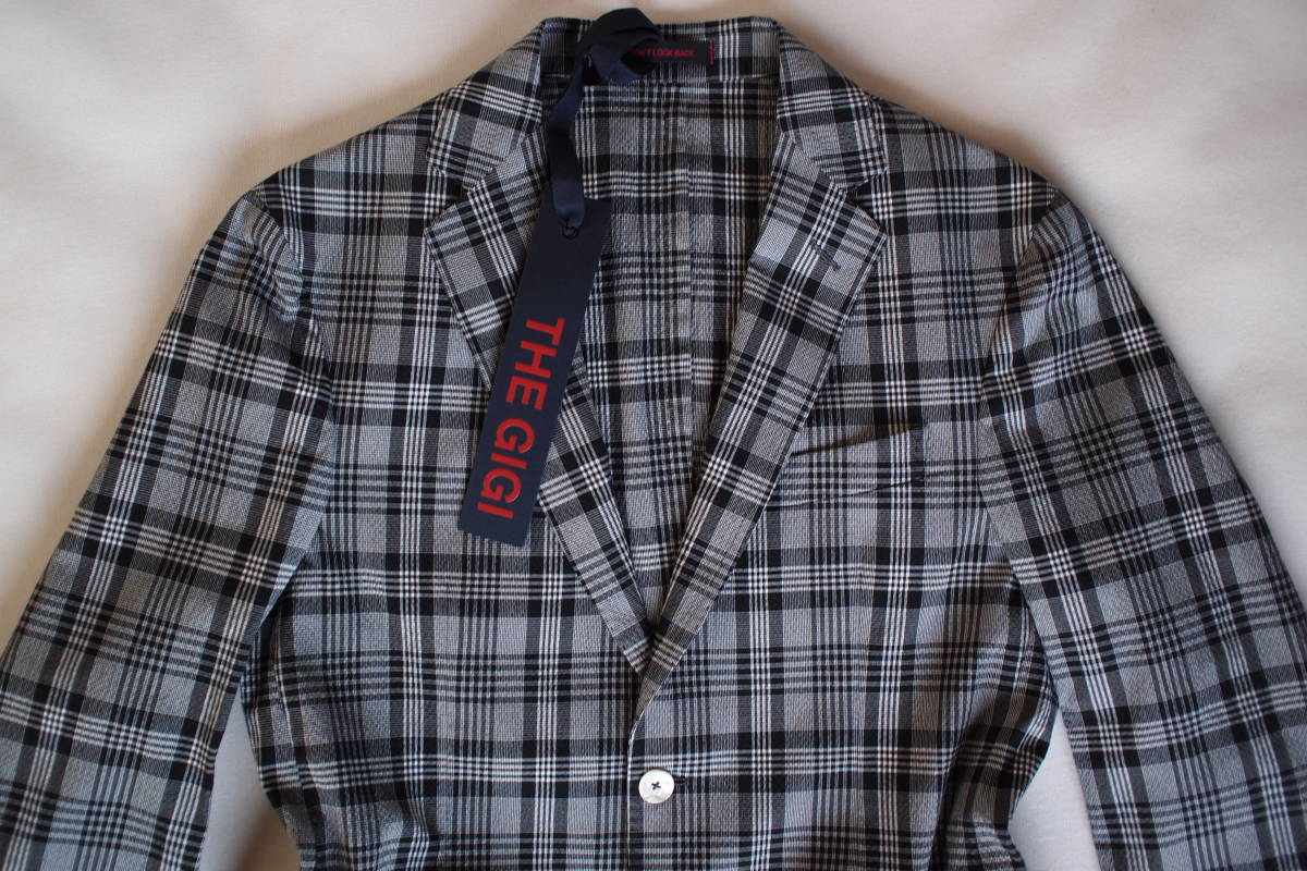 新品タグ付 イタリア製 THE GIGI DEGAS220 春夏 コットン混 グレー系 グレンチェック調 2B ストレッチジャケット 50サイズ(L~XL相当)