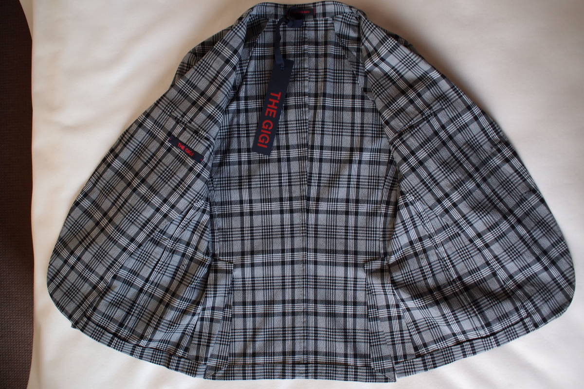 ■「新品タグ付 イタリア製 THE GIGI DEGAS220 コットン混 グレー系 グレンチェック調 2B アンコン ストレッチジャケット 50サイズ(L~XLサイズ相当) 元BOGLIOLIデザイナー」 の出品になります。