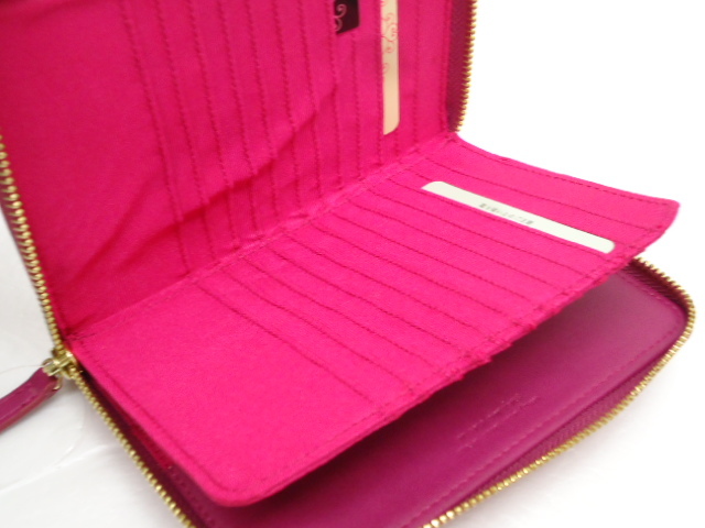 【KCM】SIF-395★新品未使用★【mono amicus/モノアミカス】カードケース 手帳型 ラウンドファスナー イントレチャート ピンク系