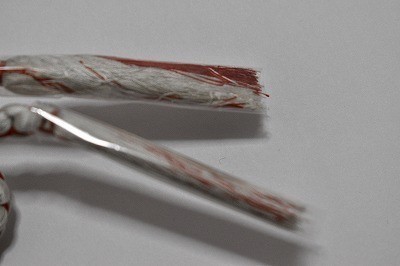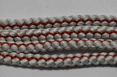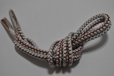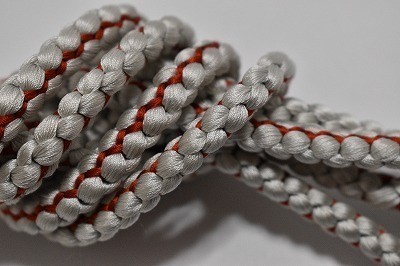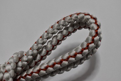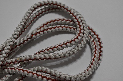 帯締め 正絹 丸組 白鼠色・暗赤色 和装小物 中古美品 oj78★喜香★