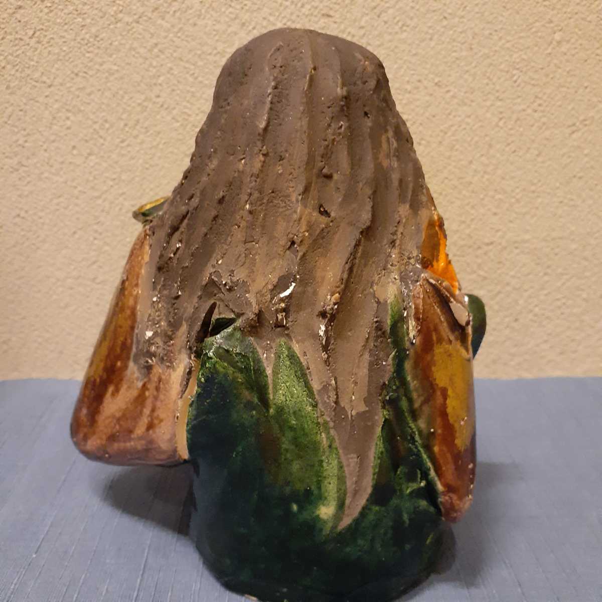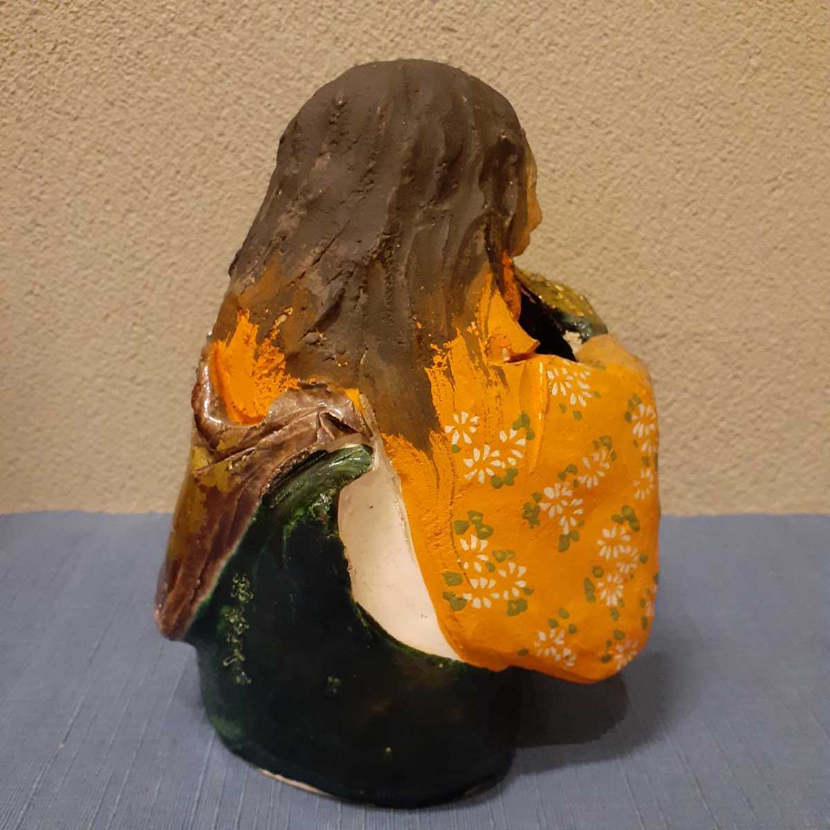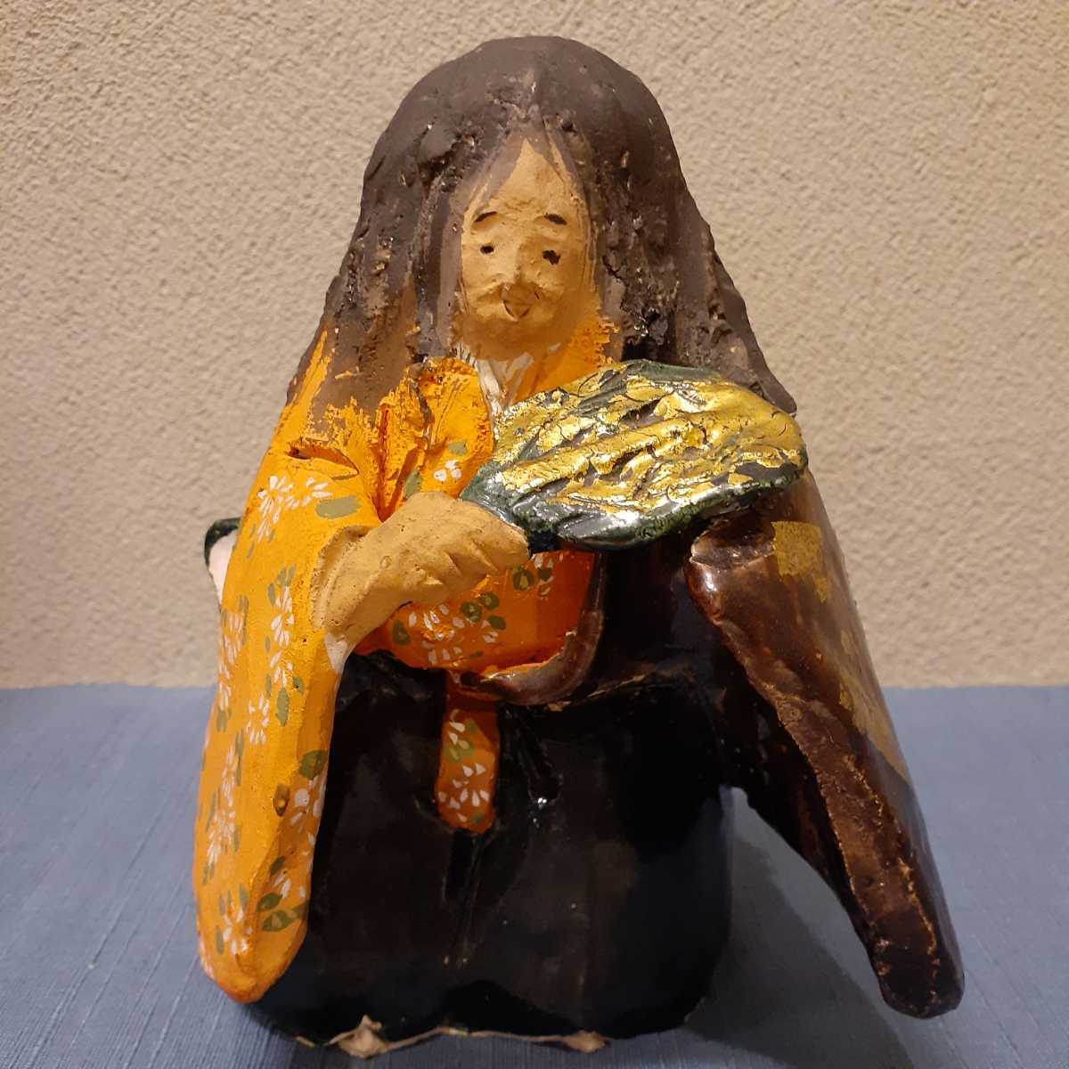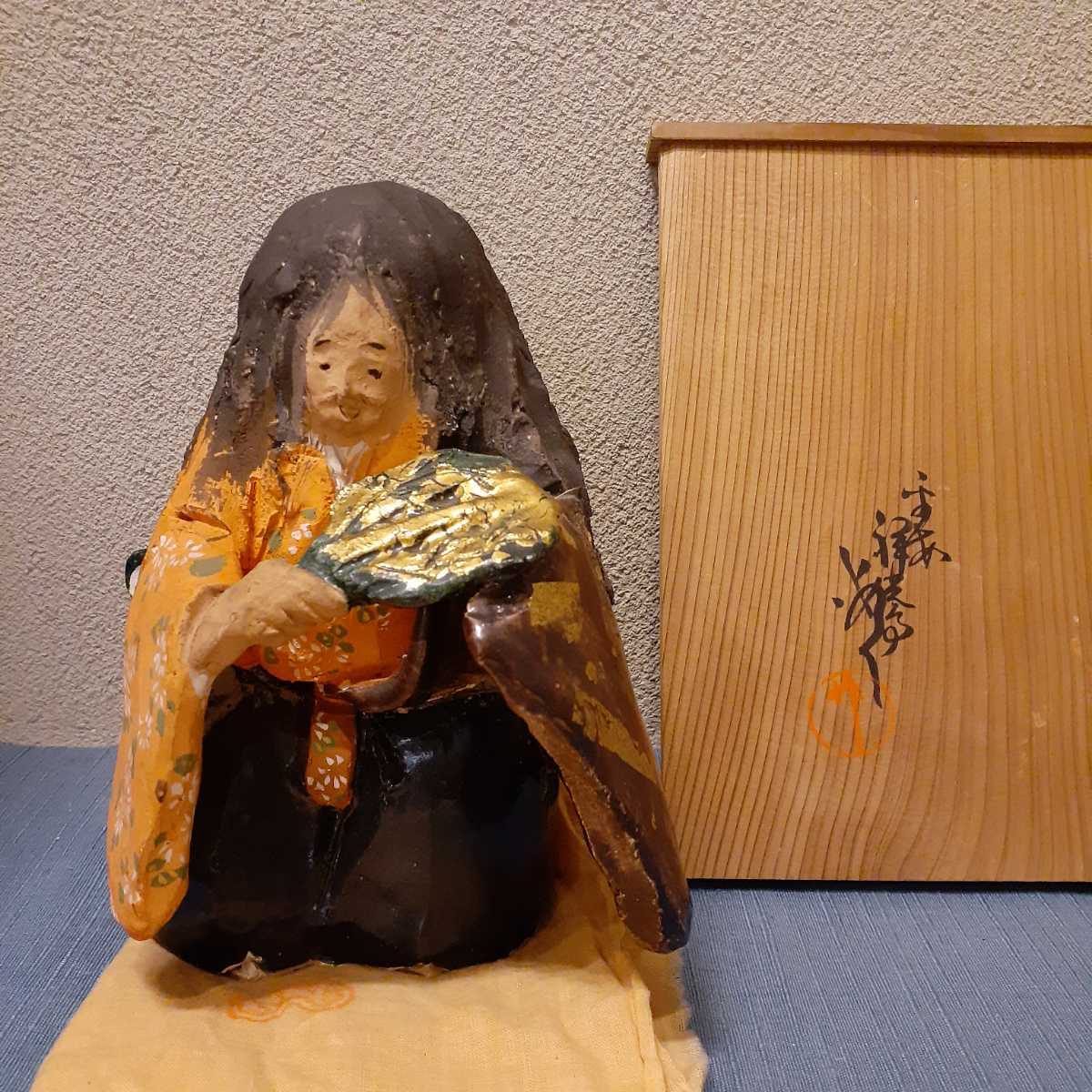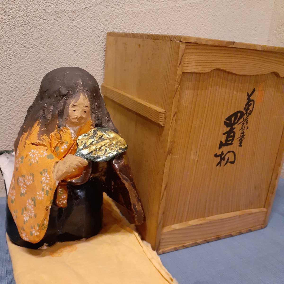 土人形 置物 菊慈童 銘あり 共箱 約15cm×13cm×13cm 記念名あり