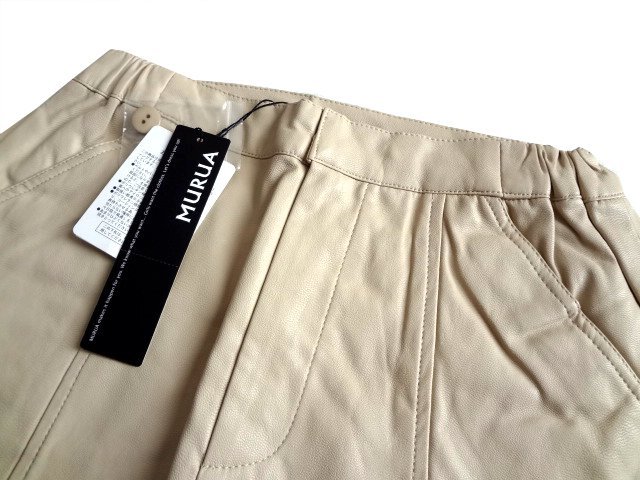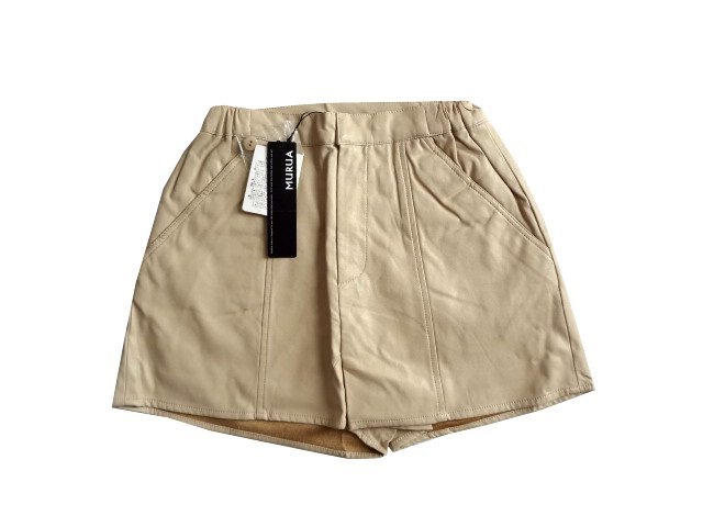 新品 定価6300円 MURUA ムルーア ベージュ 合革 ショートパンツ ハイウエスト マークスタイラー 2 レザー パンツ
