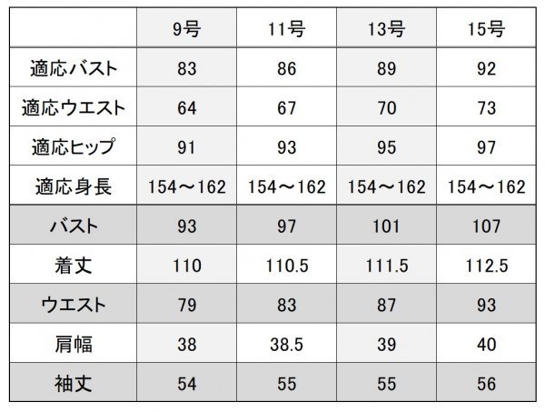 バスト93 ウエスト79 肩幅38 着丈110 袖丈54