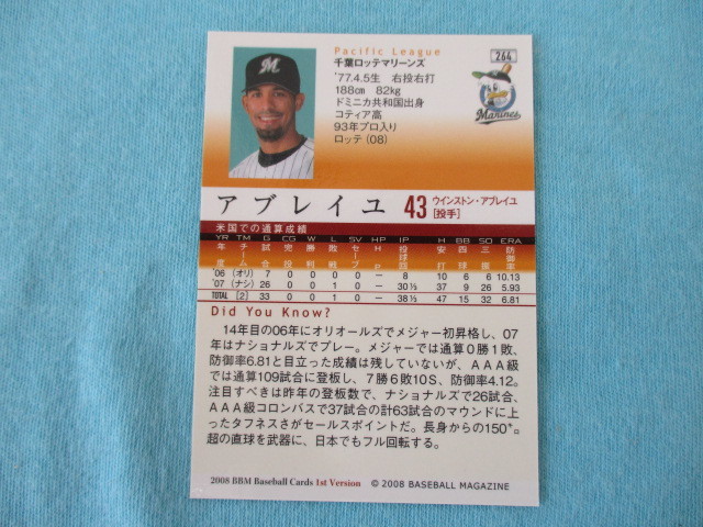 ★BBM 2008★1st Version〔264 アブレイユ 千葉ロッテマリーンズ〕トレカ♪