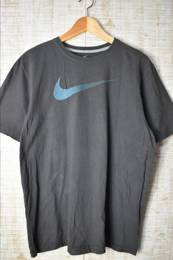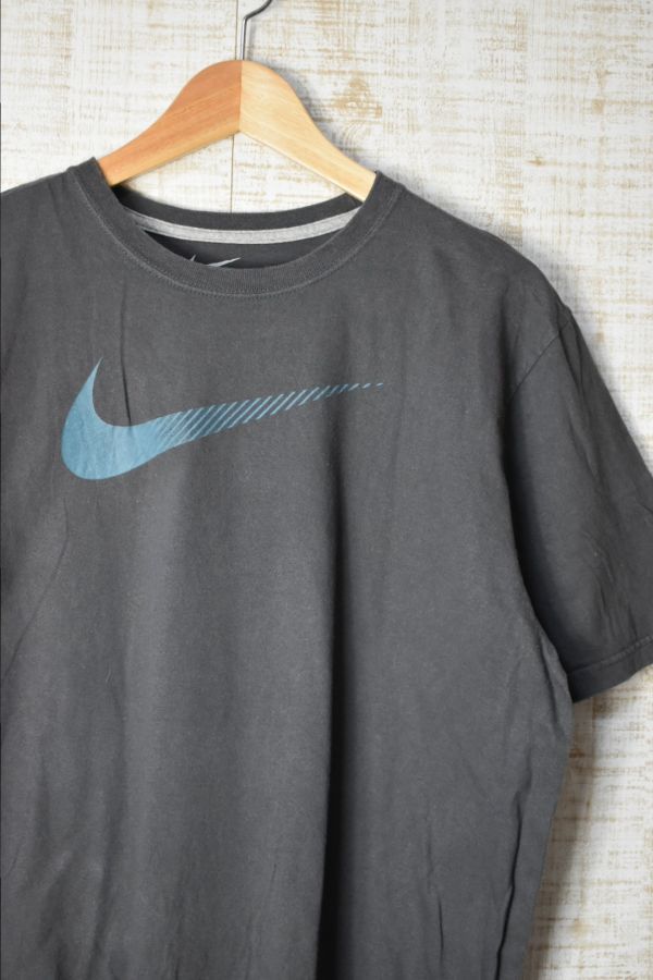 ●US USED NIKE ナイキ スウォッシュ プリント Tシャツ グレー【L】