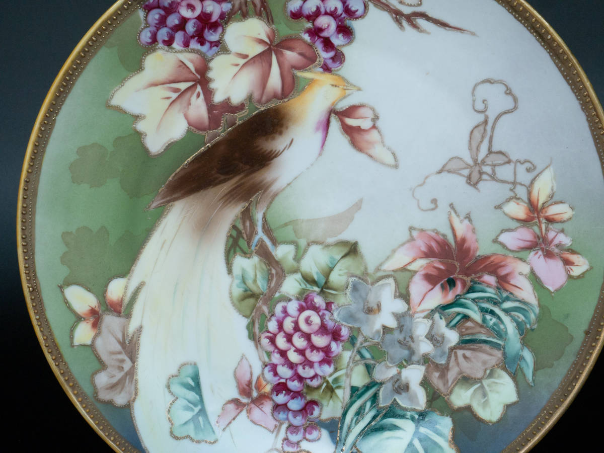 【値下げ交渉有り】 オールド ノリタケ メープルリーフ 明治期 1891~1915 ハンドペイント 金彩 ビーディング 果実に花鳥文 飾皿 プレート