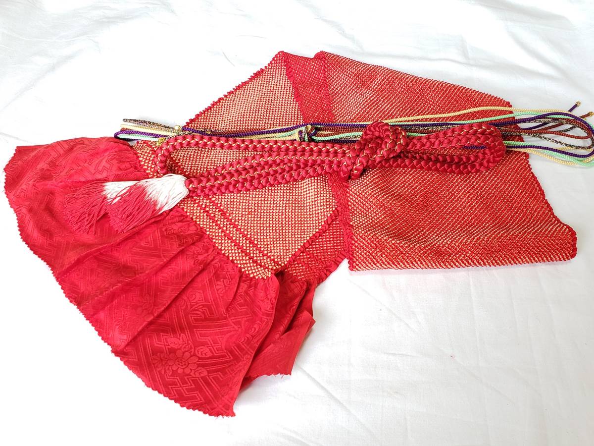 月847 セール 振袖用 総絞り USED品 赤色帯揚げ帯締めセット 飾りひも付き 最終セール!