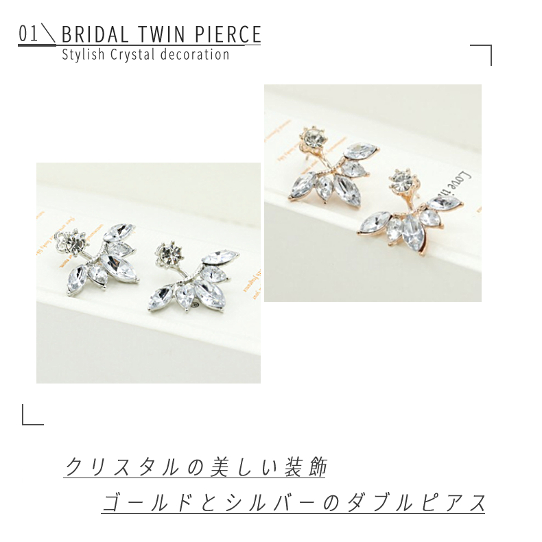 可愛らしいクリスタルピアス: 全部で5つの小さめのクリスタル装飾がついた、 とても可愛い意匠のピアス。 耳たぶのラインに沿って飾れる形状で、 さりげない耳のアクセサリーとして最適です。 ゴールドとシルバーの2色セット: 豪華な雰囲気の " ゴールド " 扱いやすい色の " シルバー " 2色を1ペアずつのセットとなります。 どちらの色も落ち着いた雰囲気を持つため、 フォーマルな場でも安心してご使用いただけます。 各パーティー、結婚式、女子会でもOK! 美しい装飾付きのクリスタルピアスになります。 |