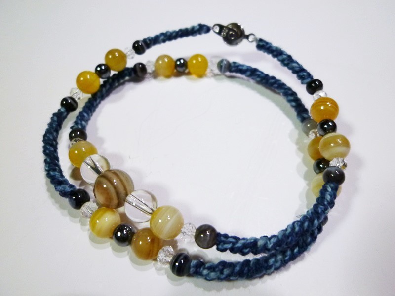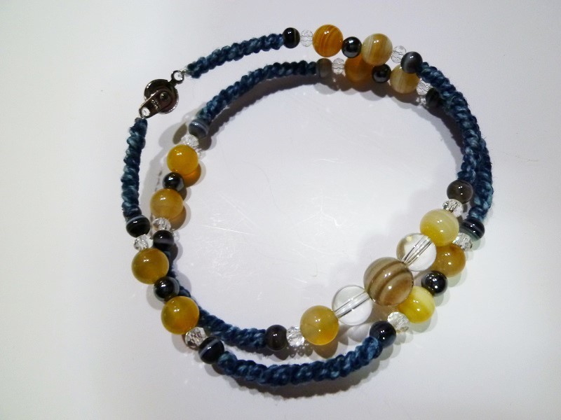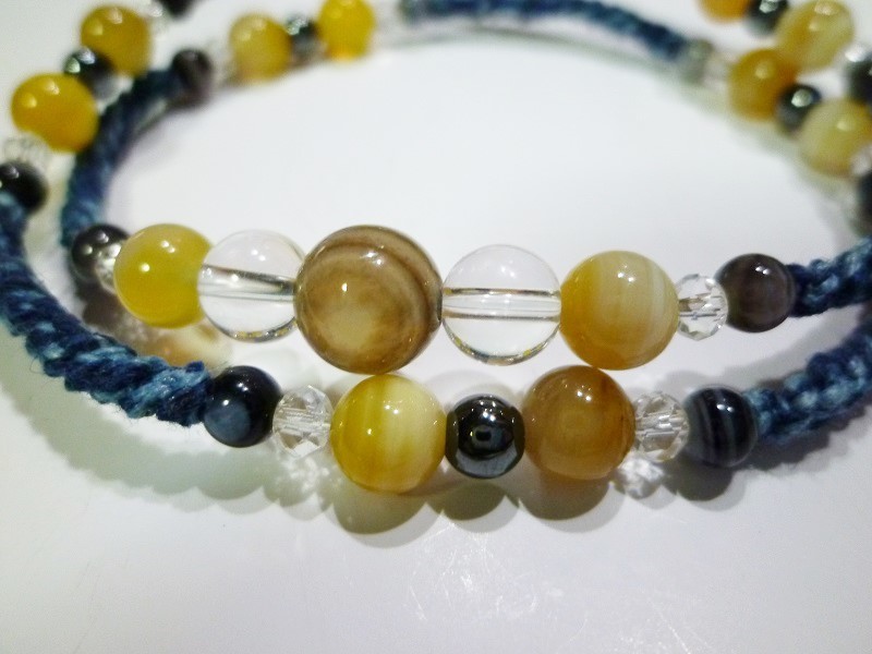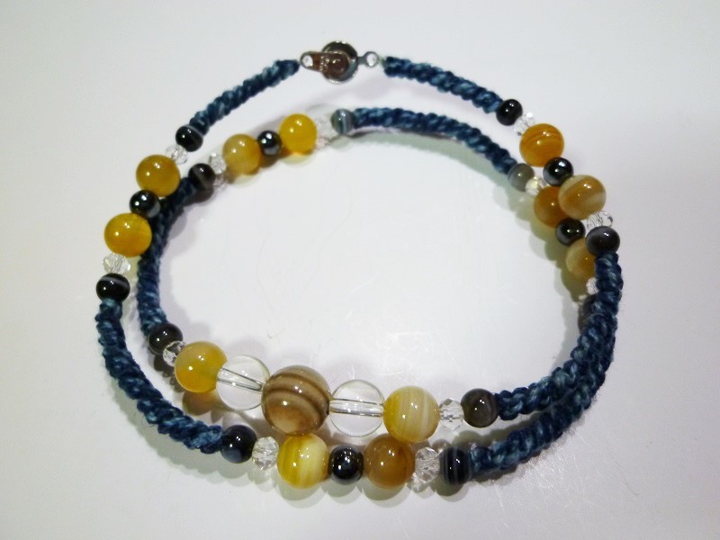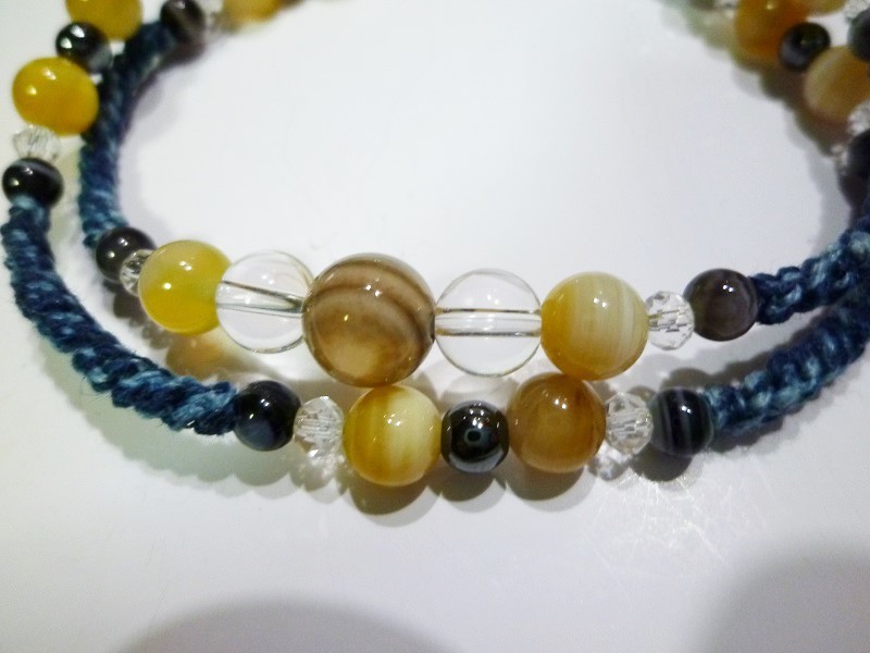 ボツアナアゲード 水晶 ヘマタイト マクラメ 2連ブレスレット