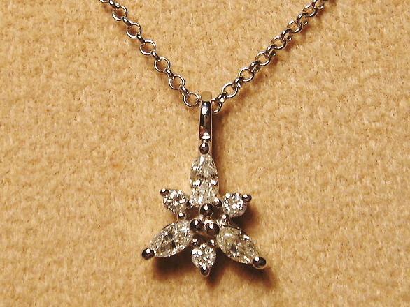 マーキスダイヤをうまく使ってデザインされた、シンプルでリッチなダイヤペンダント♪