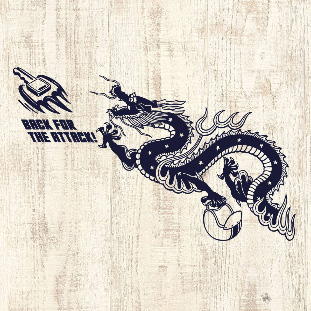 ■ATTACK Tシャツ■Sサイズ(ホワイトxネイビー) ドラゴン 龍