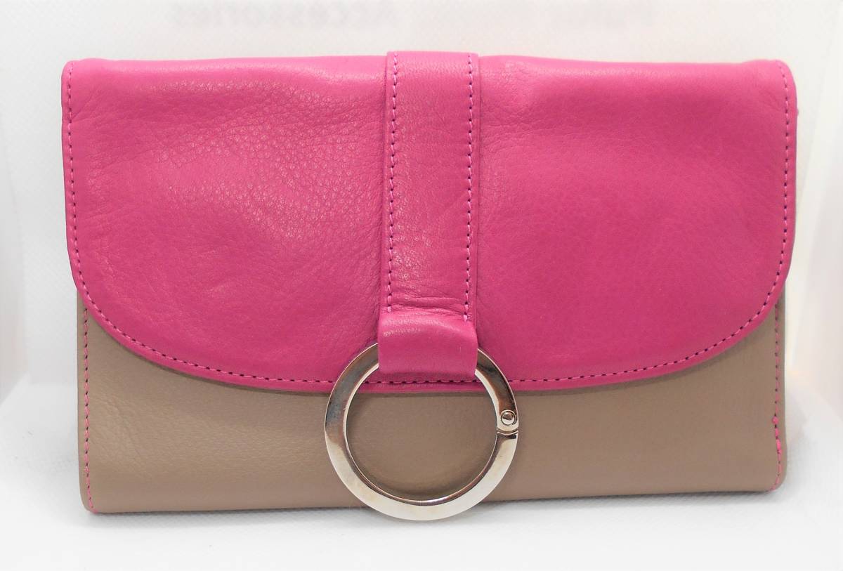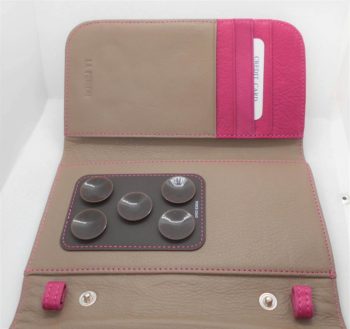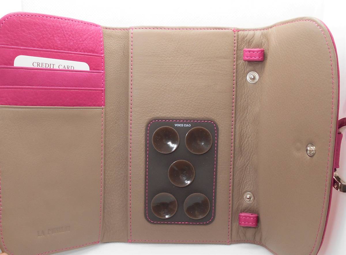 【新品】80%オフ レディース La Punieni  モバイルウォレット 牛革 ショルダーバッグ お財布 スマホケース ピンク 3way