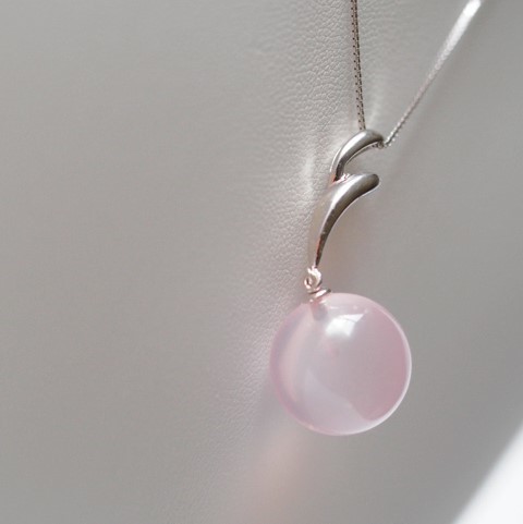ピンク水晶 SV ペンダントトップ ネックレス 15mm 丸石