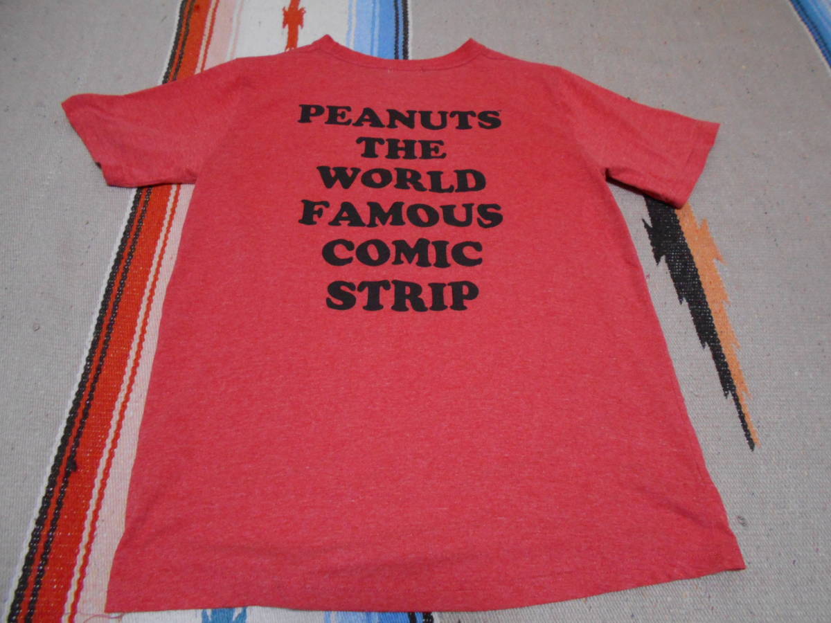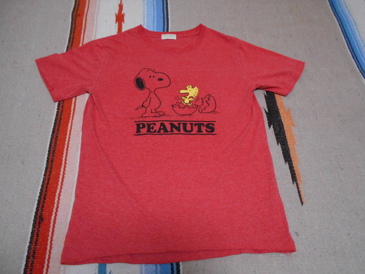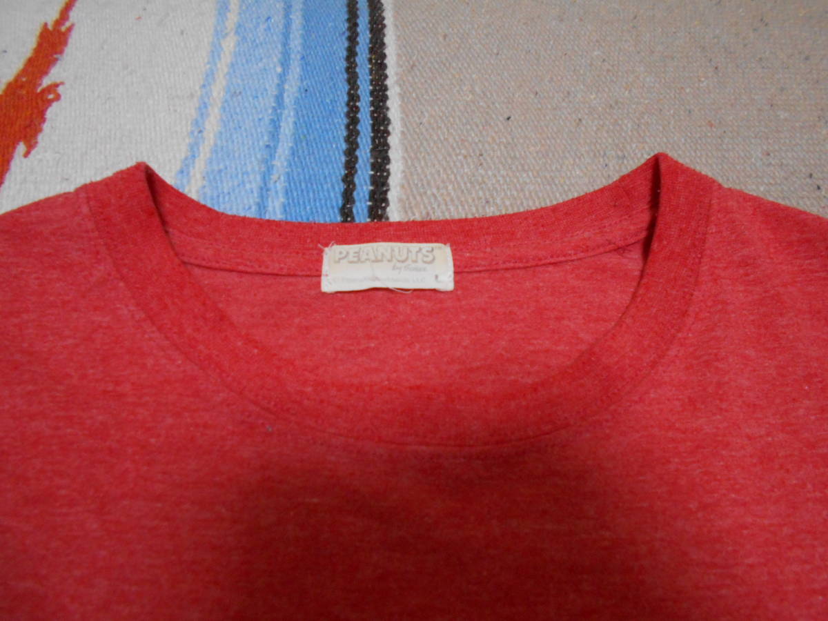 風合い深いビンテージレッドアッシュのベースカラーに1960Sスタイル クラシック ン SNOOPY & WOODSTOCK グラフィックにバックのアンティークフォントデザイン、ルーズ過ぎないシルエットと伸縮性の有るビンテージ素材感