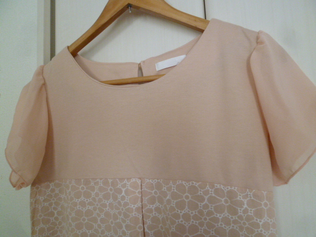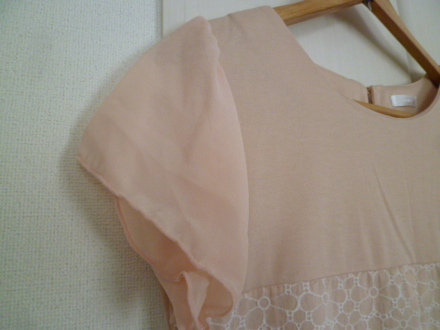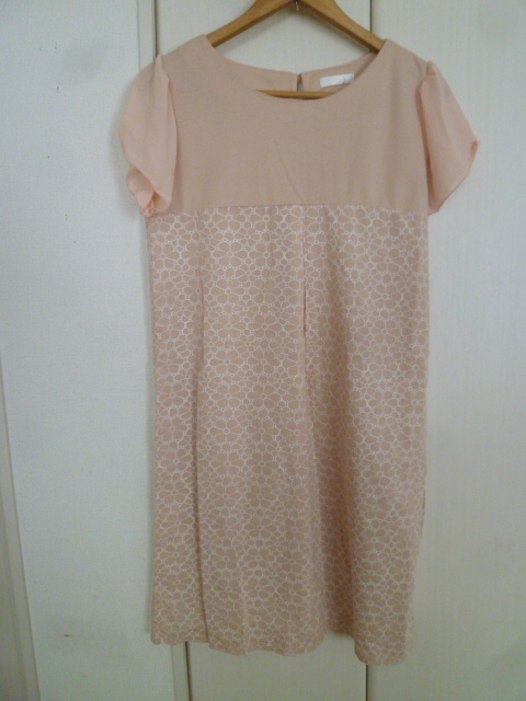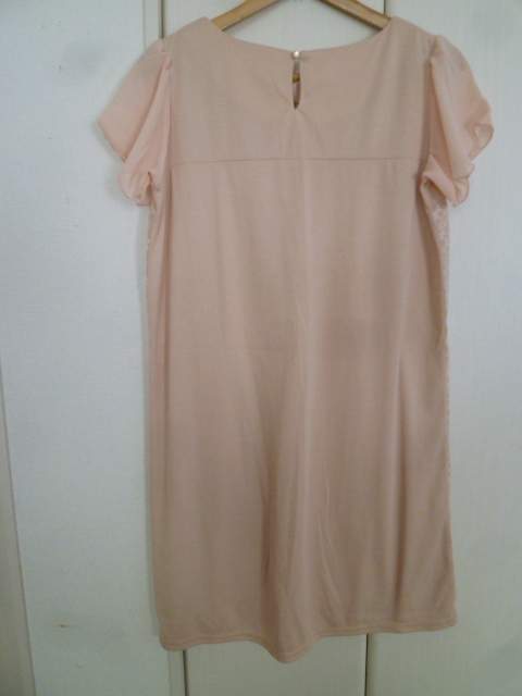 DRESKIP/ドレスキップ△ライトピンク刺繍レースお花柄シフォン袖ワンピースLL/ワールド大きいサイズ膝丈半袖異素材△28
