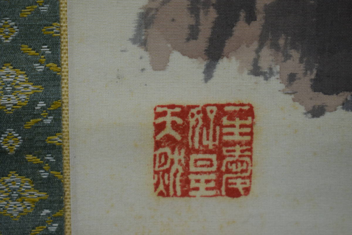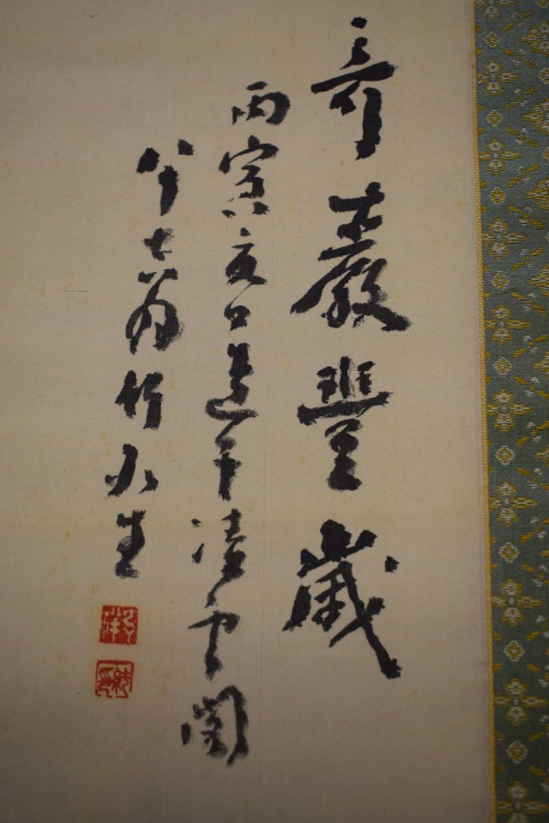 本紙は絹本肉筆です。 本紙は薄汚れ・多少のシミがあります。表装は概ね良好です。 巻裏に汚シミがあります。