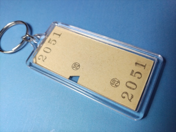 ・使用済みの硬券(実際に使用された切符・B券)を、透明キーホルダーにしたものです。