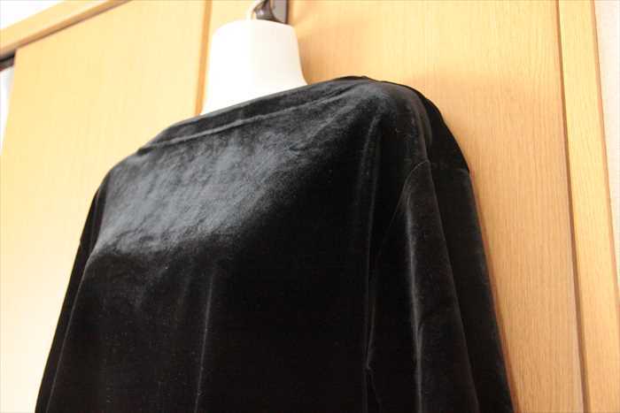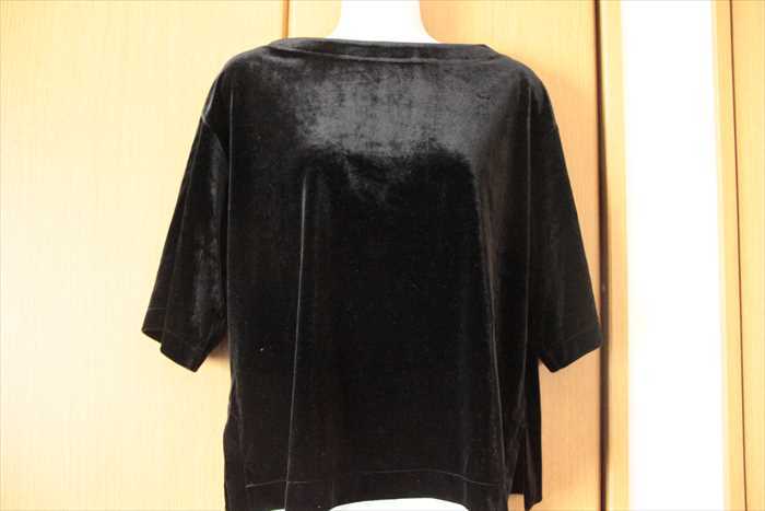 ★1回着!ユニクロ ボートネック ベロア 7分袖 カットソー 黒系S★ | |||
