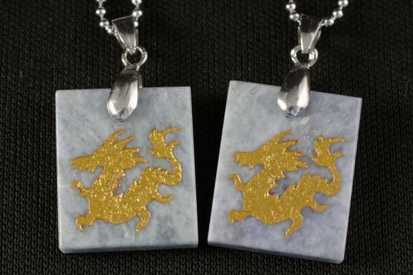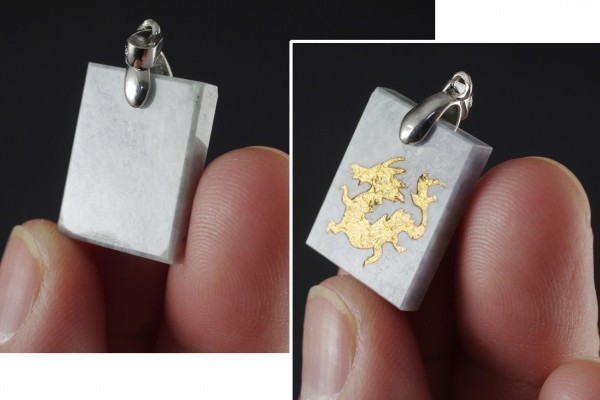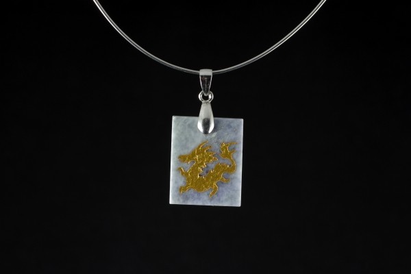 新潟県糸魚川産翡翠に金色の龍の刻印を入れたペンダントトップ☆