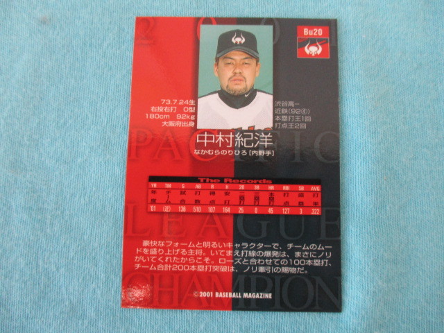 ★BBM 2001★〔中村紀洋 Bu20〕大阪近鉄バファローズ 優勝記念カード トレカ♪