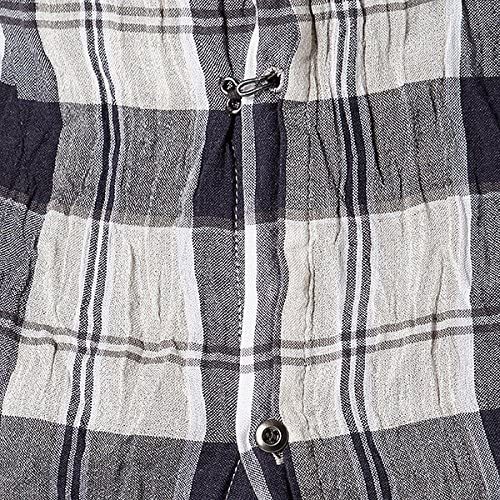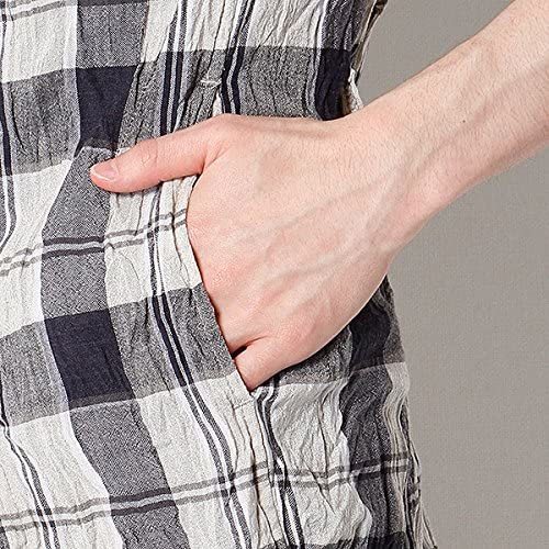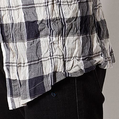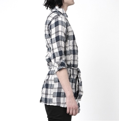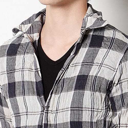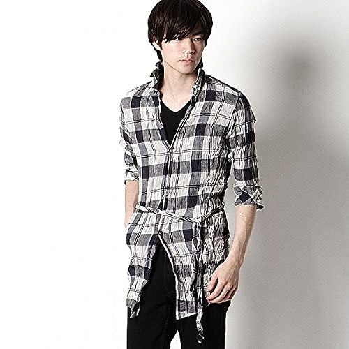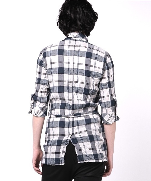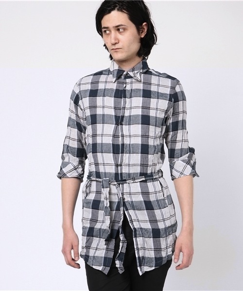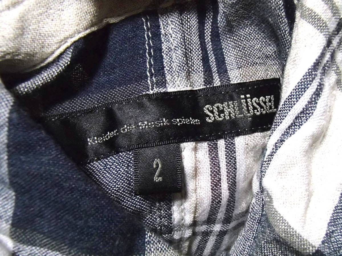 SCHLUSSEL ロング シャツ シュリセル ブルー 青 チェック 半端 5分 ホワイト 7分 白 コットン 丈 長丈 綿 麻 メンズ m サイズ 男