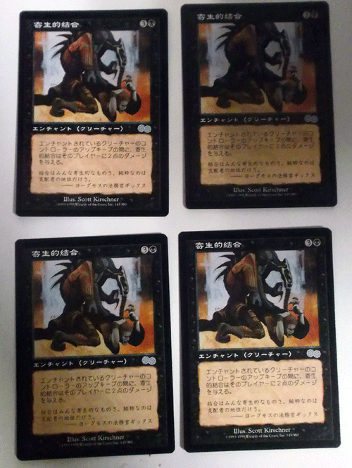MTG/日本語/4枚セット/寄生的結合/ウルザズ・サーガ/アンコモンです。中古品扱いですので、神経質な方、美品をお求めの方は入札をご遠慮ください。