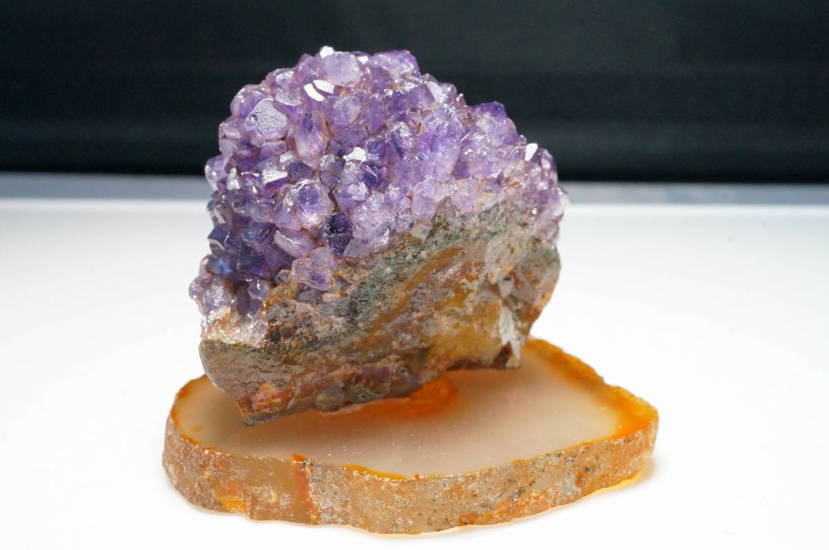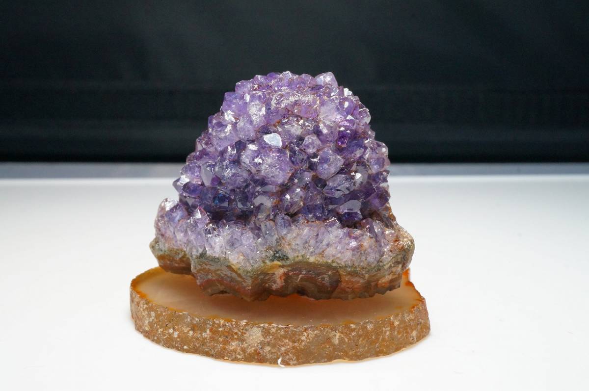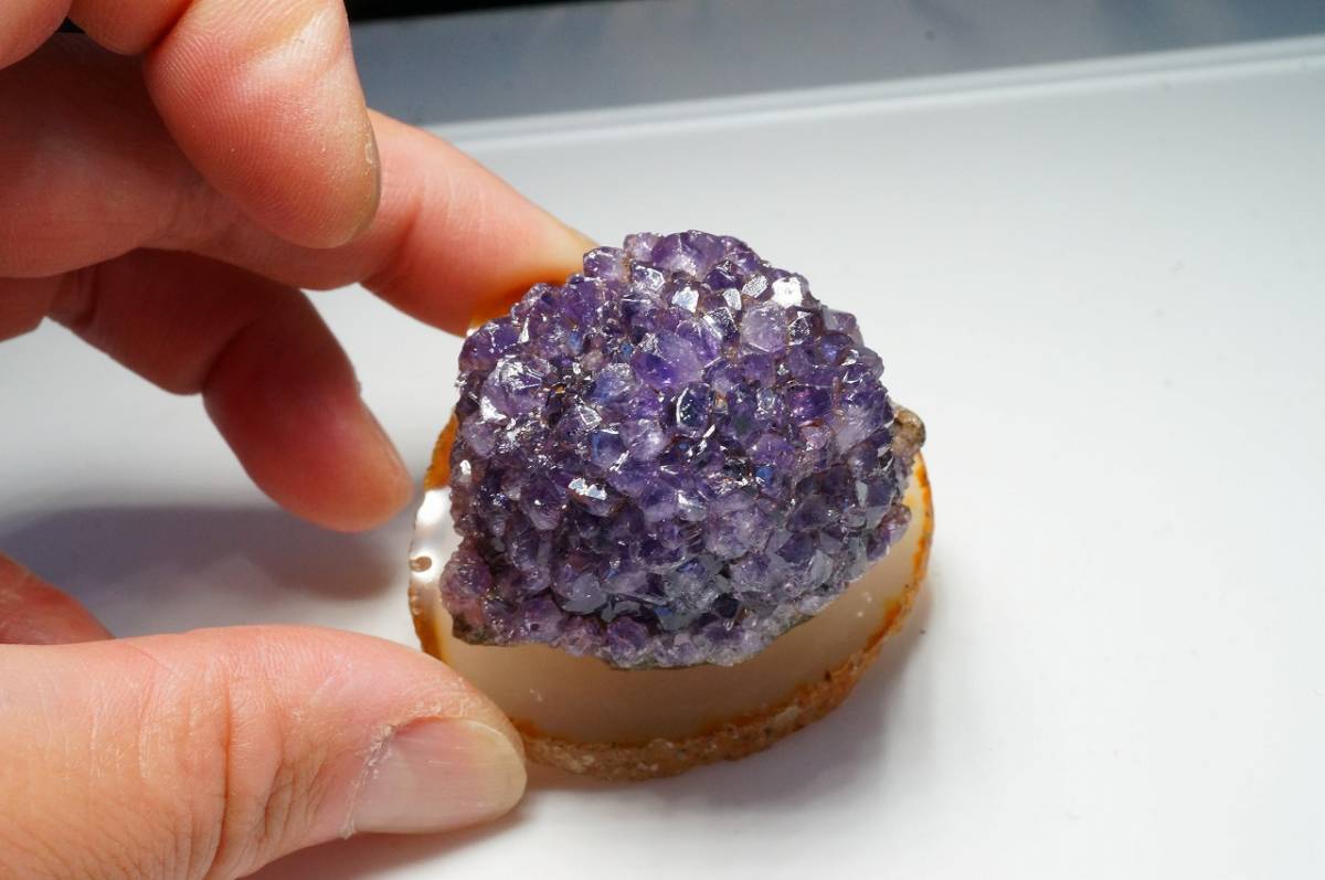 | 30年前の未使用在庫!アメジストウルグアイ産/amethyst /紫水晶/アメジスト&瑪瑙台座付き431ct/86.2g | |||||||||||