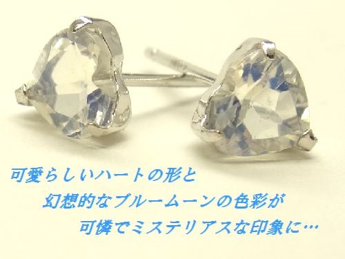 K10 ブルームーンストーン 5mm ハート WG YG ピアス 10金 選べるゴールド ジュエリー 6月誕生石 天然石 スタッド かわいい 箱付き