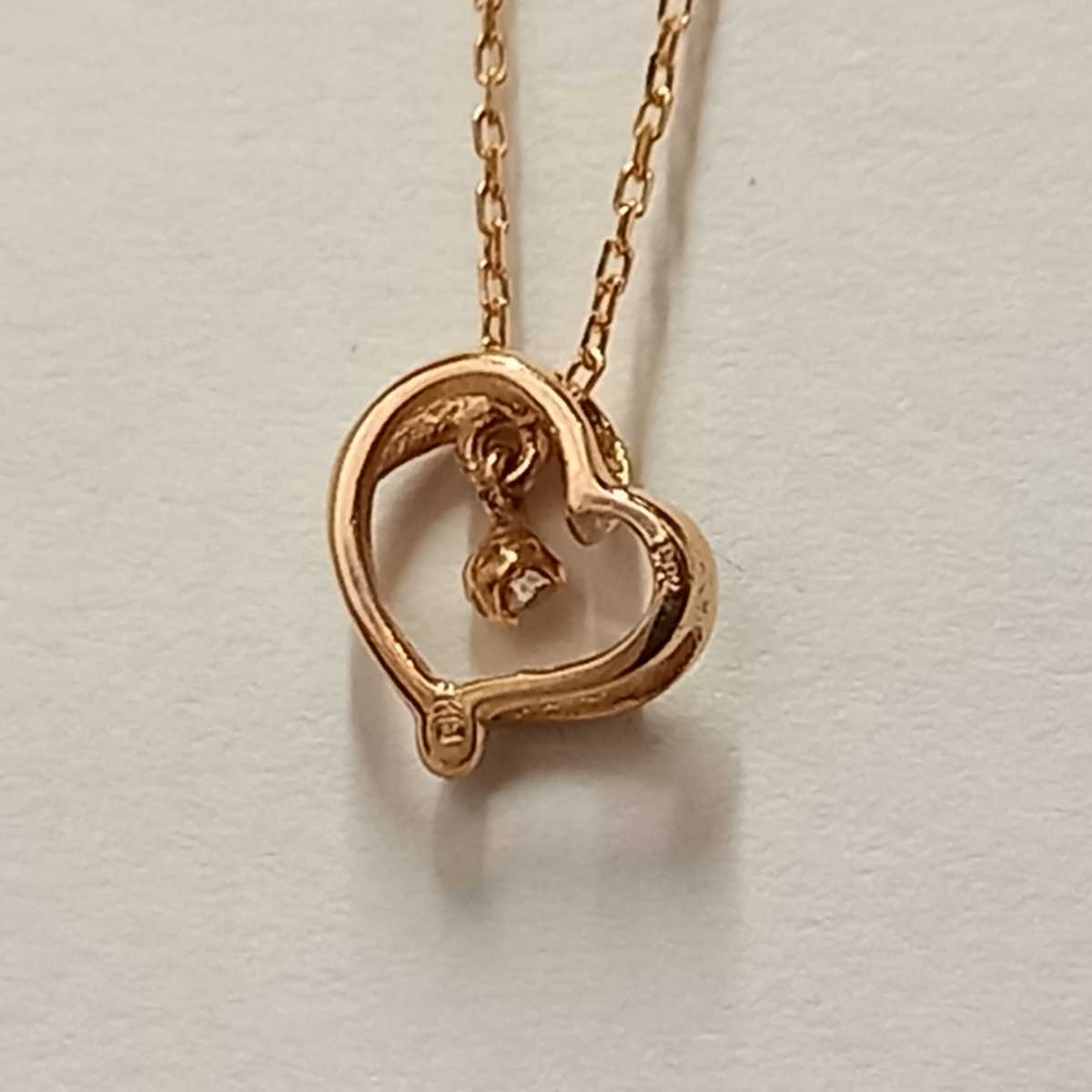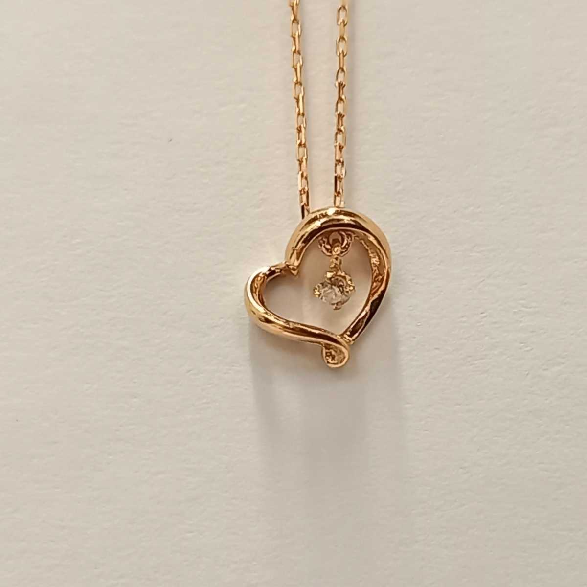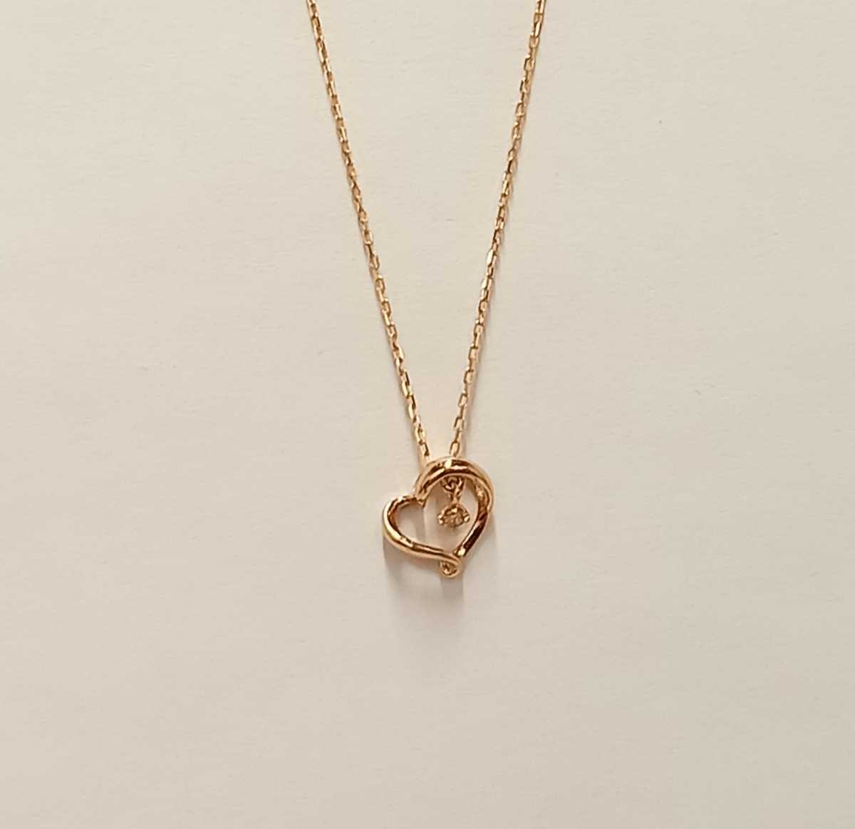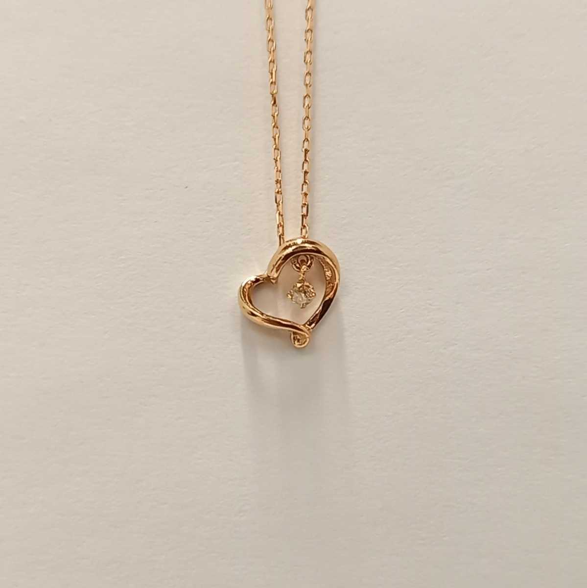 18金ピンクゴールドの角アズキネックレスに天然ダイアモンド付のハートペンダントを合わせたペンダントネックレスです。