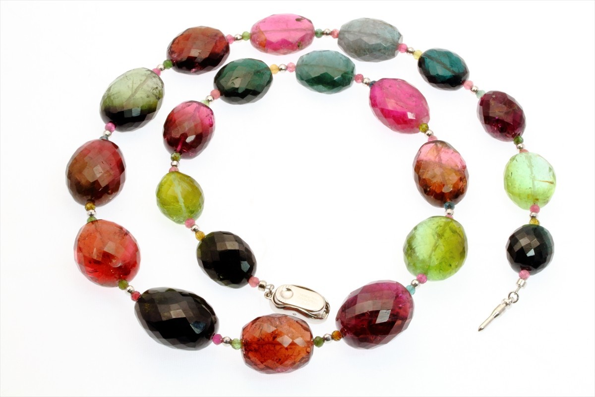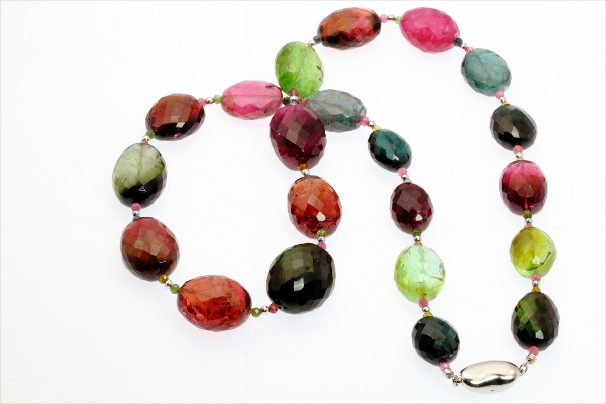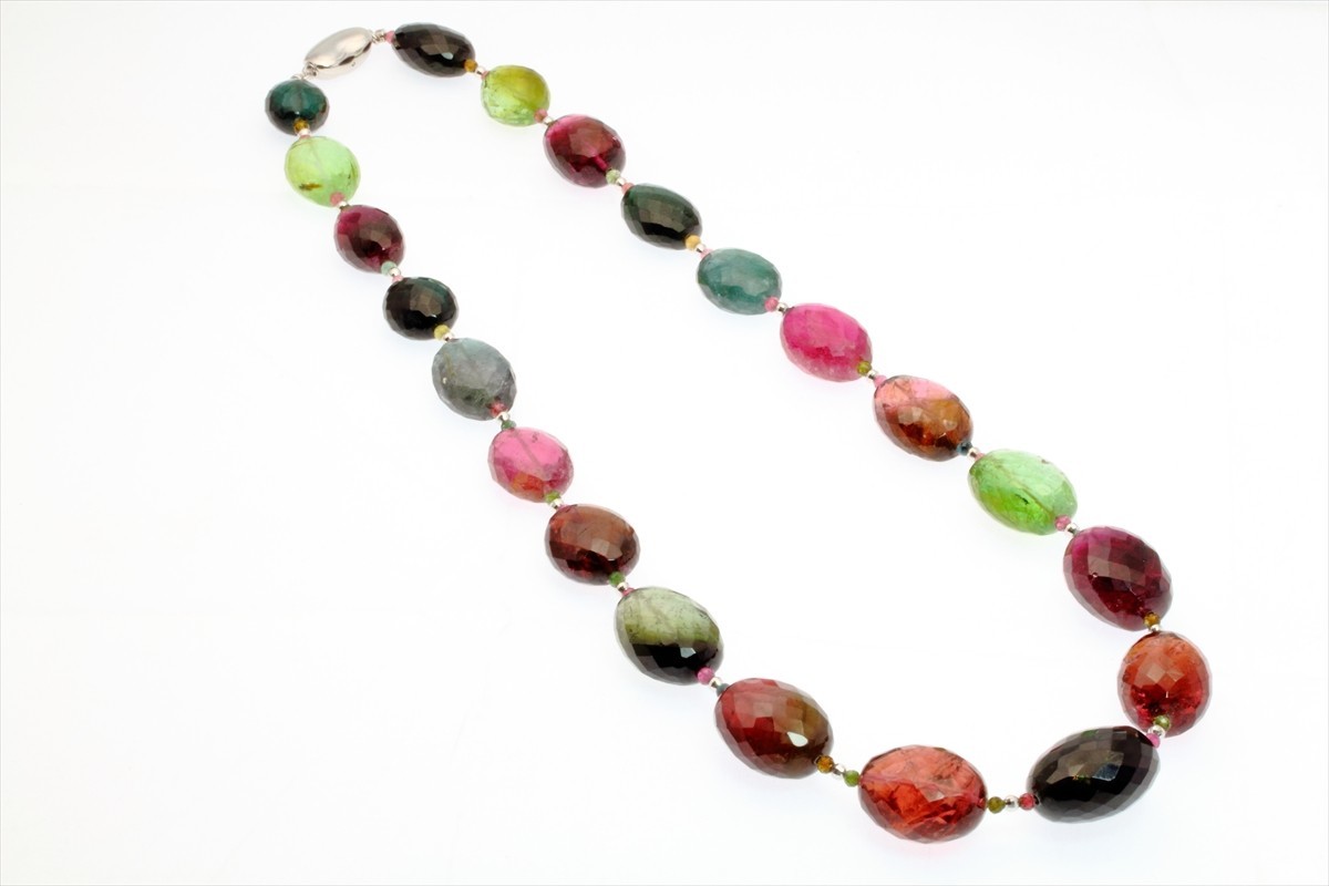 天然マルチカラー大粒トルマリン432ctネックレス K18WG/SV925