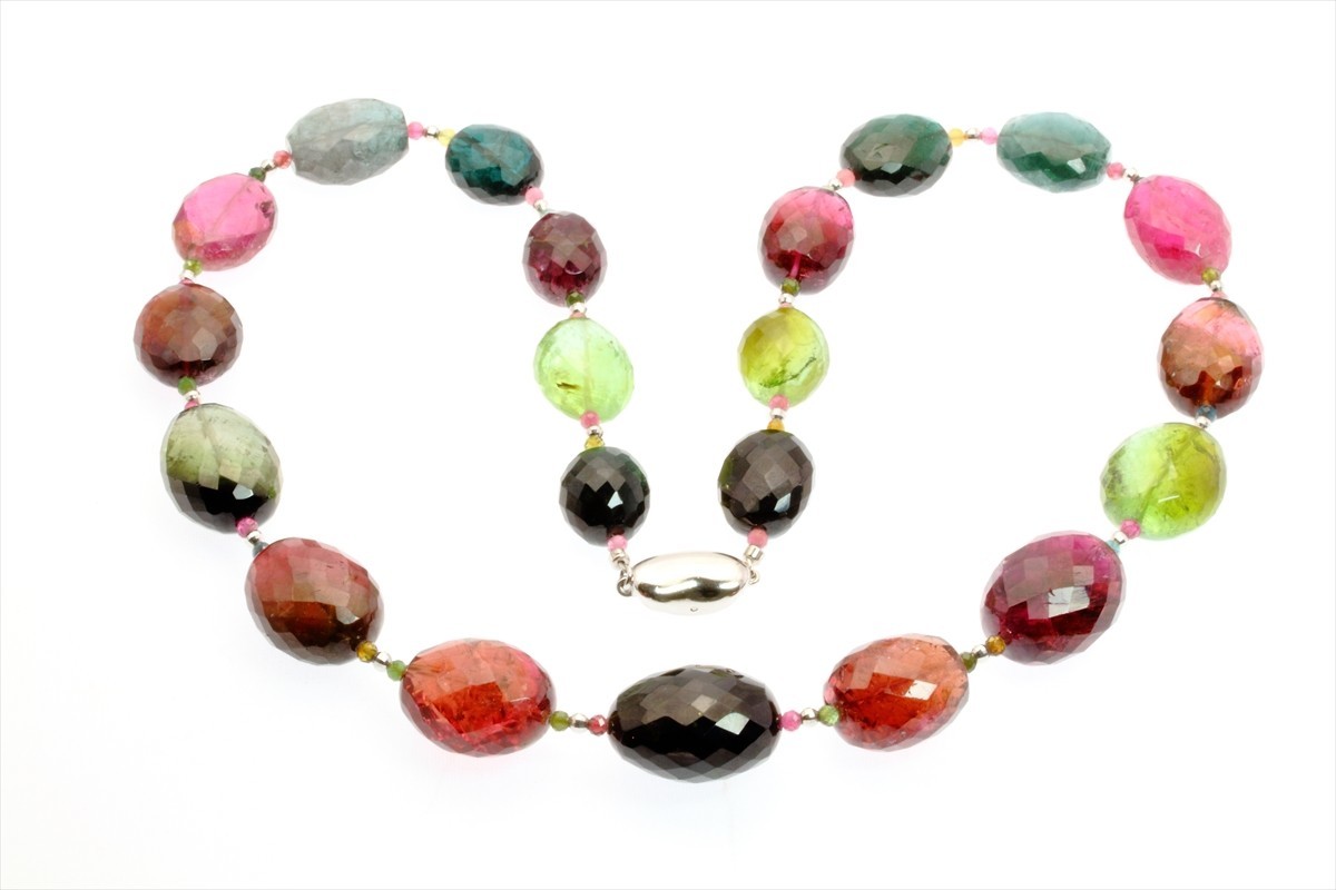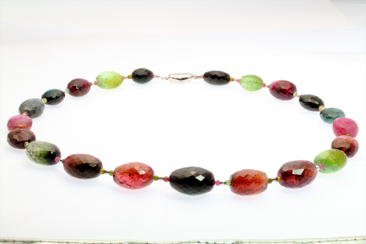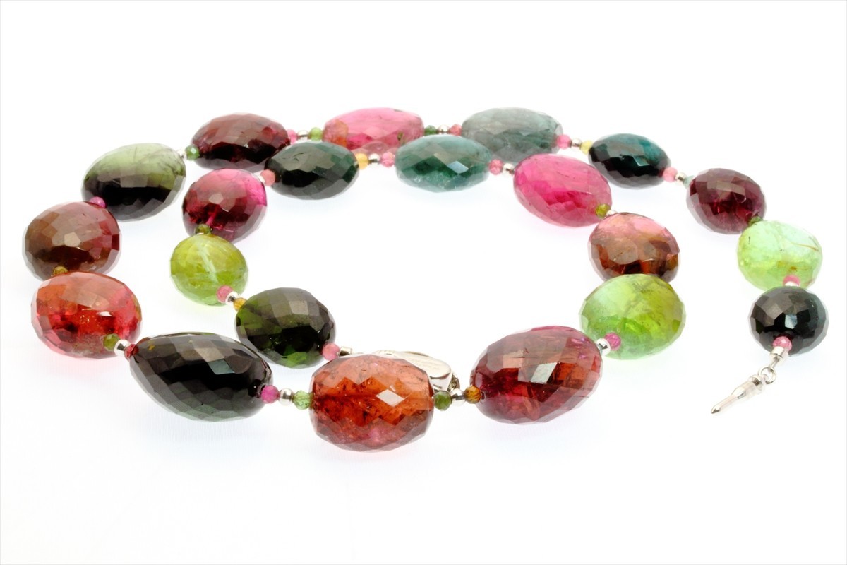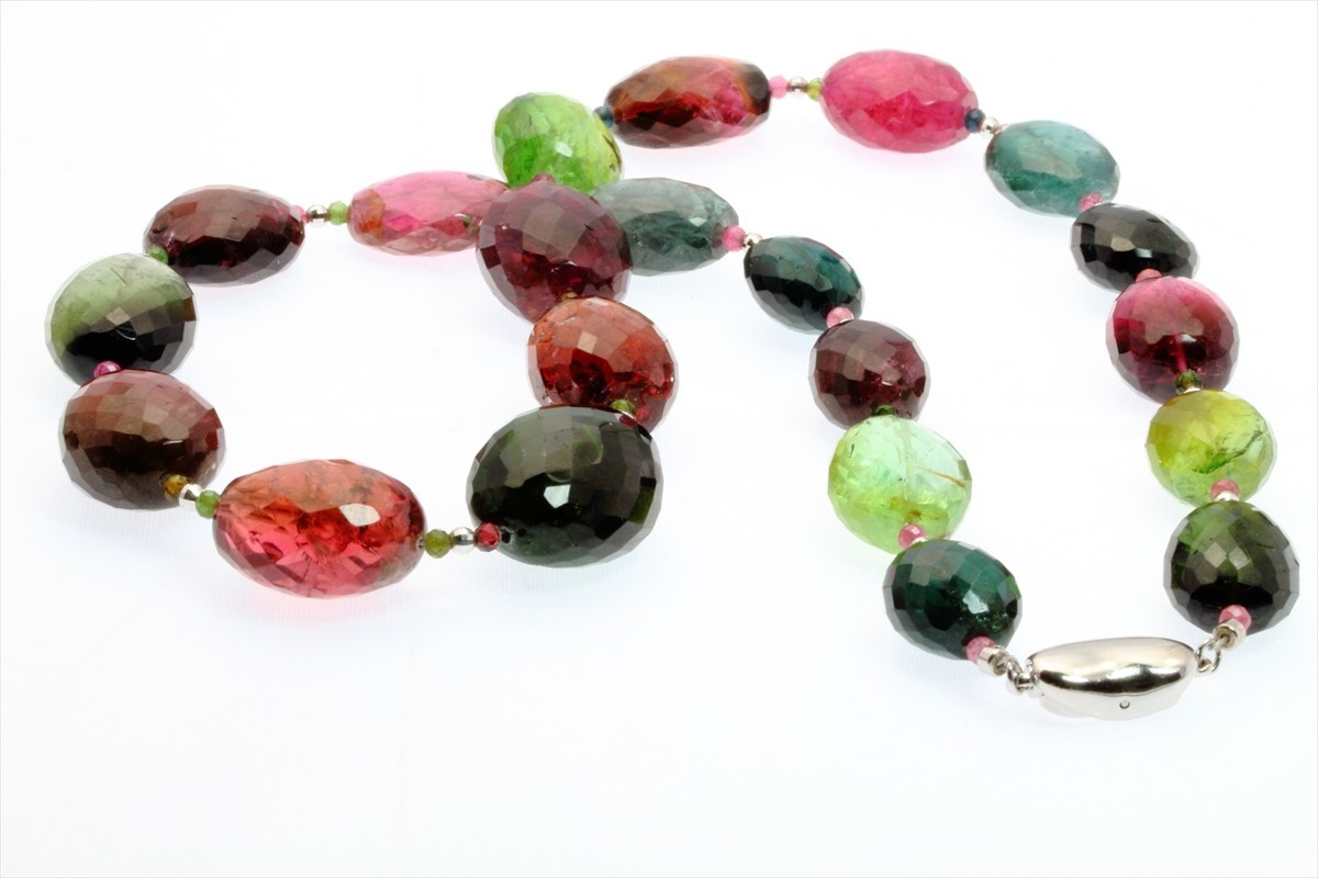 天然マルチカラー大粒トルマリン432ctネックレス K18WG/SV925