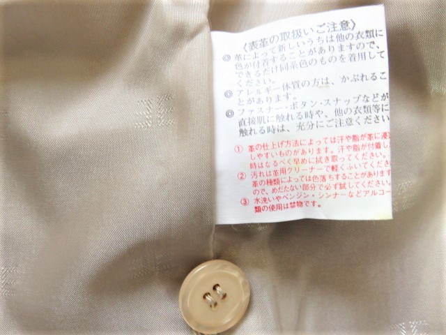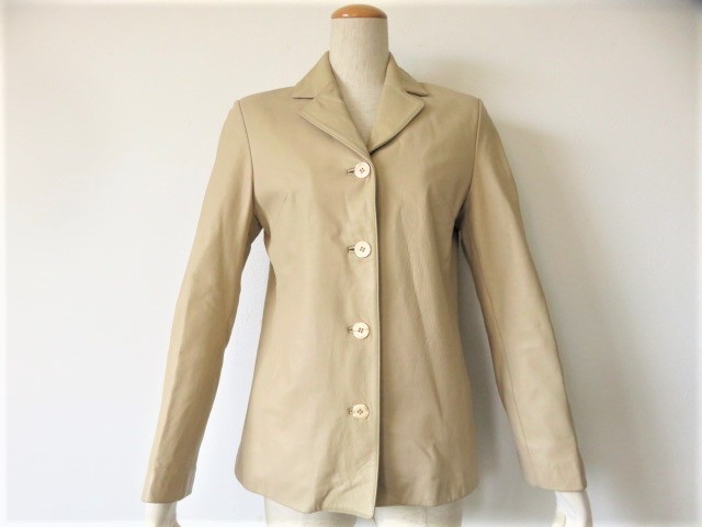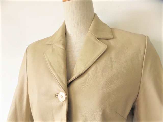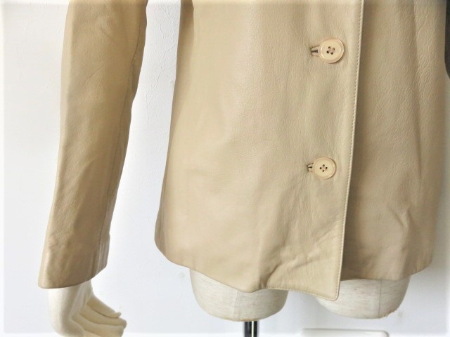 ■【 GRACE A MONDE Italy mode 】グレース ア モンド イタリーモードレザージャケット【55】9号M ライトベージュ クリーム色 j723