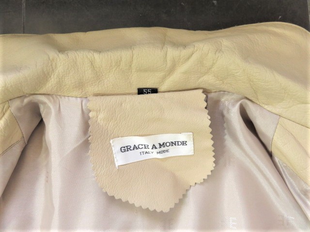 【GRACE A MONDE】グレース ア モンド レザージャケット、お色は白っぽいベージュンです。