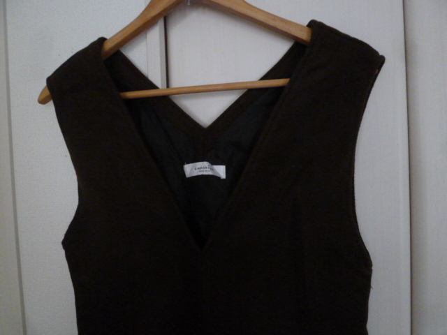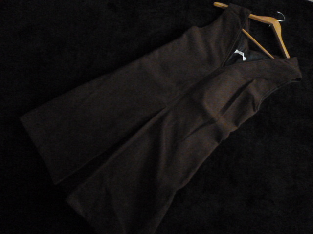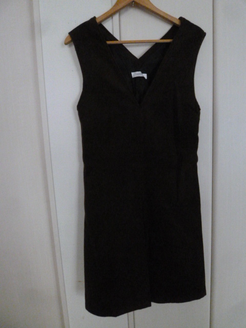 EMPORIUM/エンポリアム○濃茶VネックボックスプリーツジャンパーワンピースL/ブラウンシンプルワールド膝丈○OP123⑤