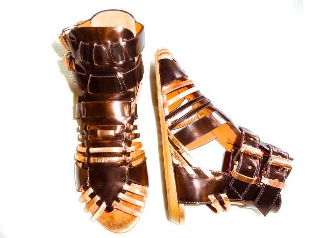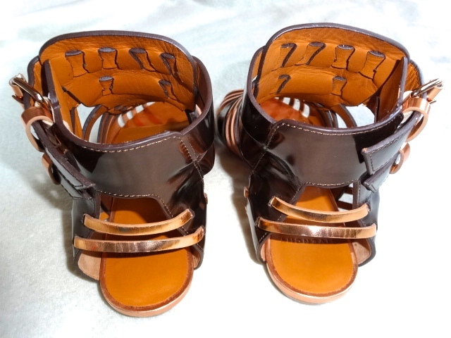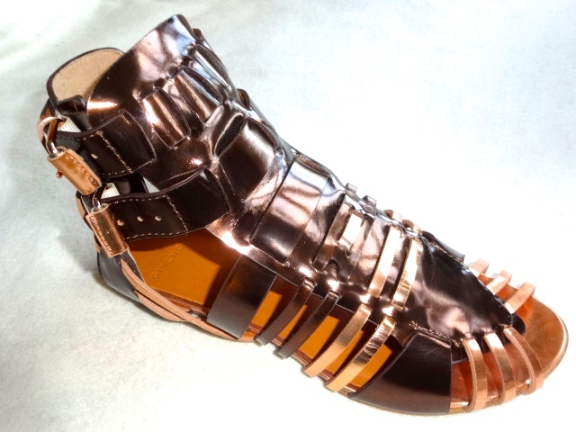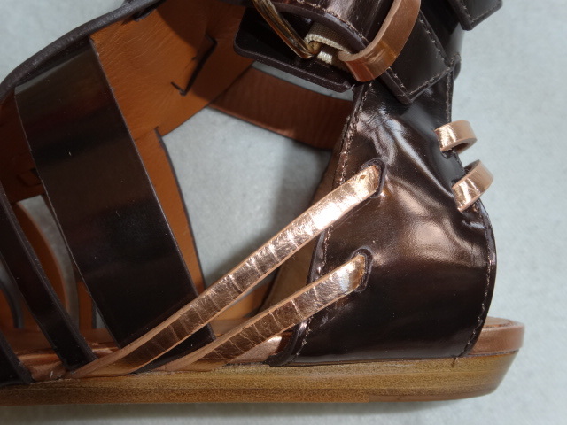 メタルカラーが上品で、線の太さがいろいろと変化し、なかなか見る事の出来ないキレのある貴重なサンダルです。