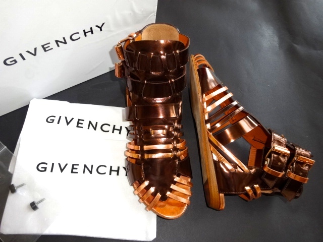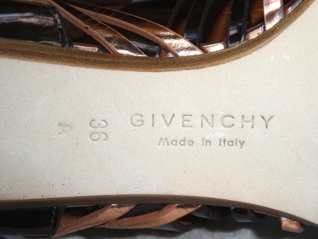 ● GIVENCHY ジバンシィ ペタンコシューズ 36 23cm フラット サンダル メタル 革 エナメル ブラウン ピンク 新品 カリガ 装着性 イタリア製