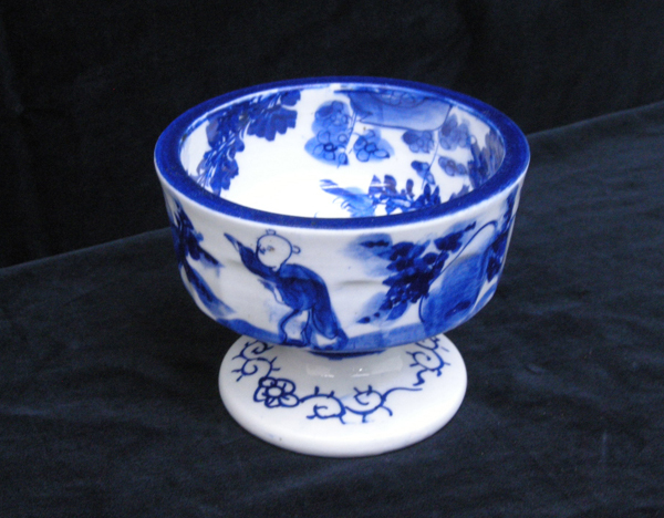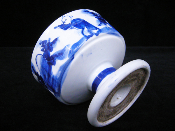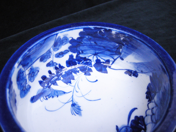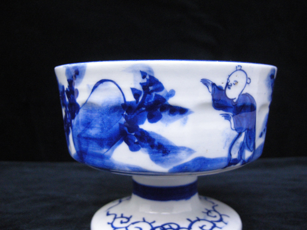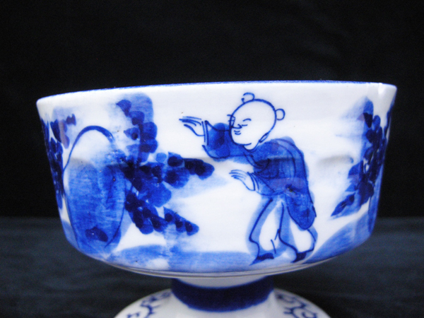 唐子紋染付杯洗・古民具・骨董・アンティーク・大正・昭和初期・143617
