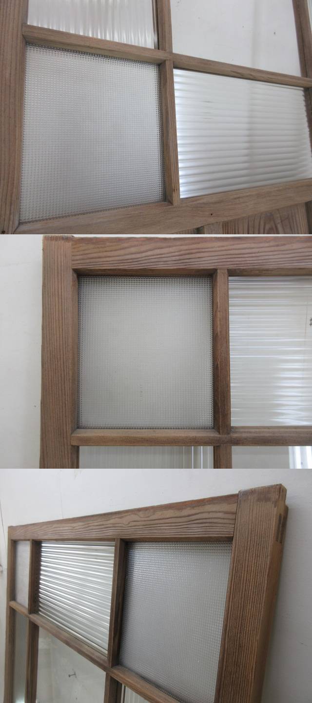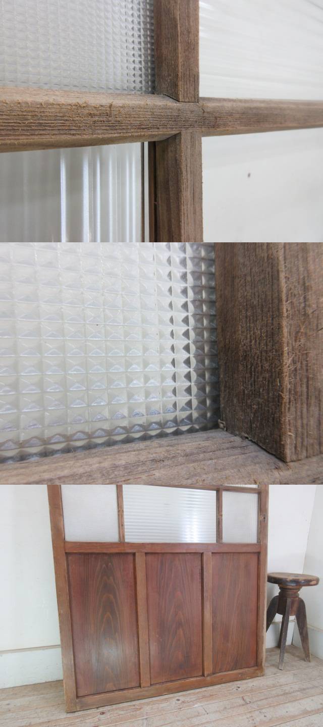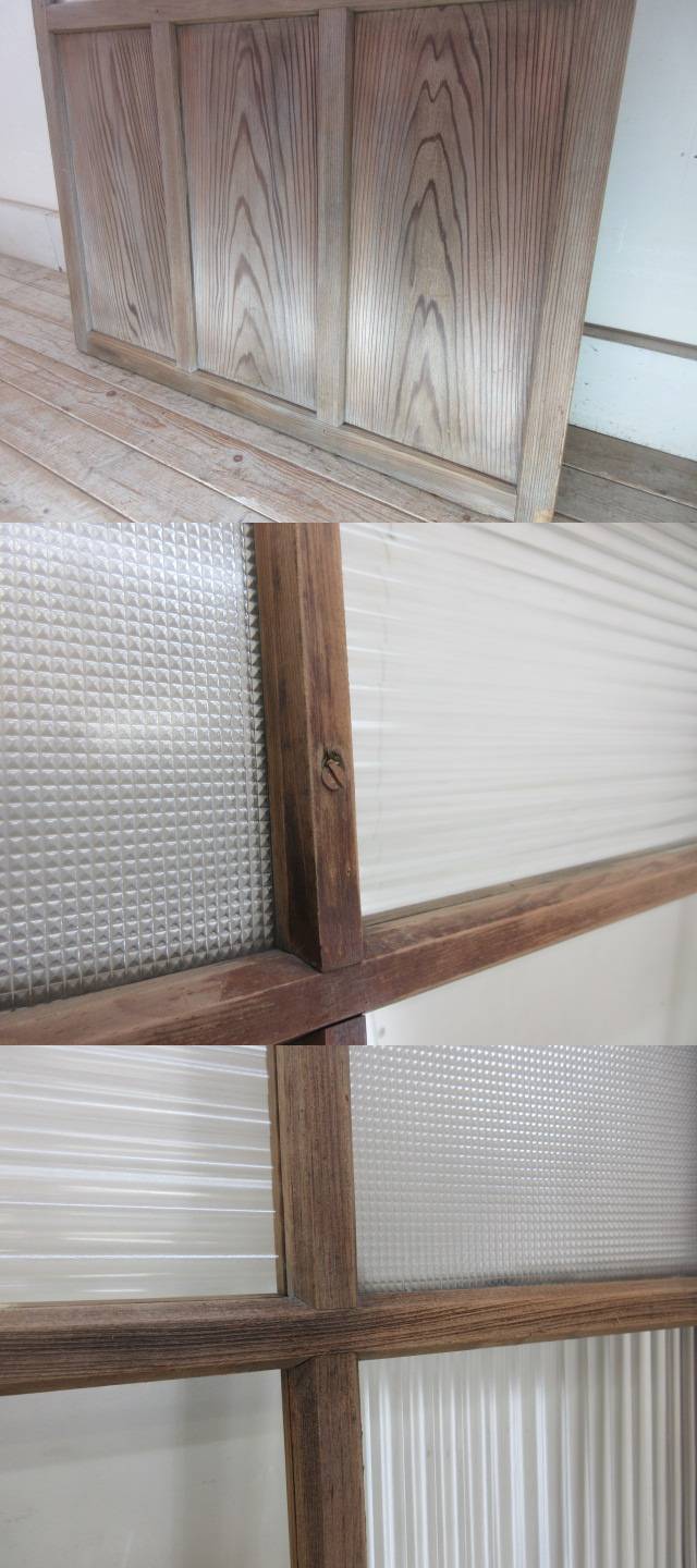 古い木味のモールガラスの引き戸A124