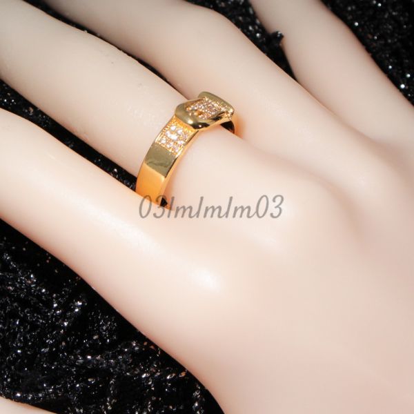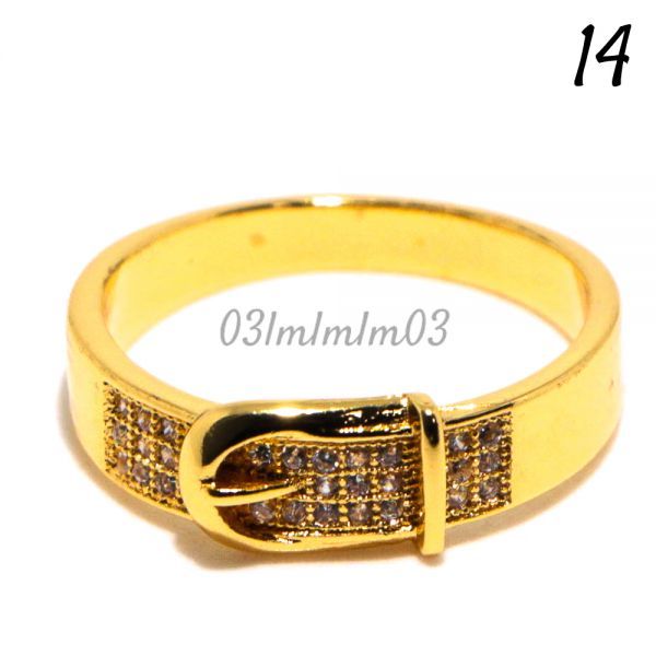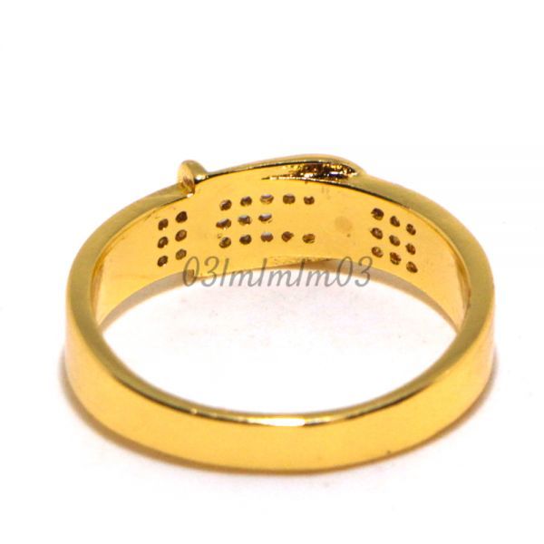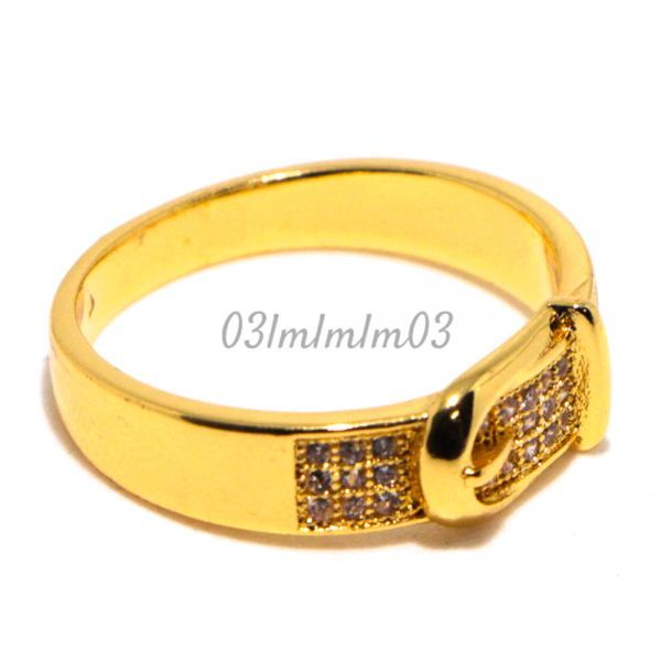【送料無料・即決】A16 リング 14号 人工石 ホワイトサファイア ベルト ファッション ゴールドフィルド コスチュームジュエリー 指輪