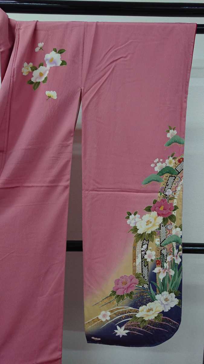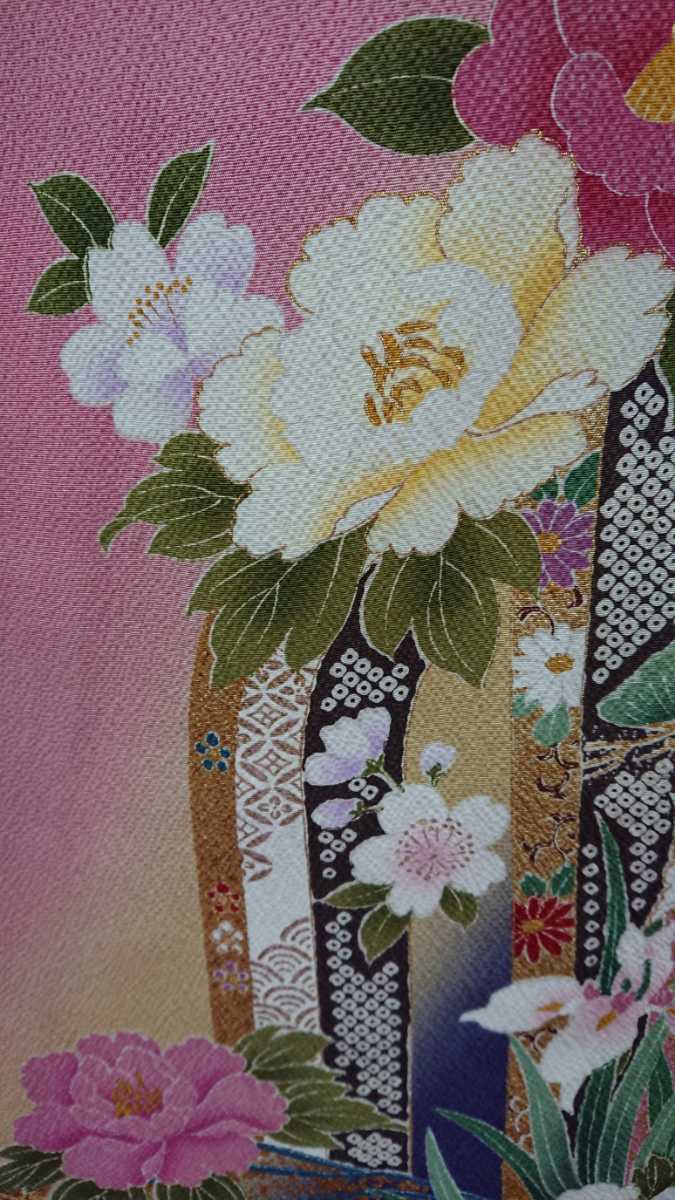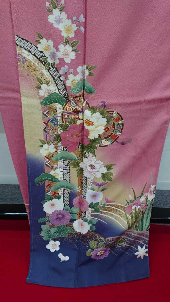 『 井483 振袖 成人式 式典 イベント セレモニー サーモンピンク ゴールド 花 210209』