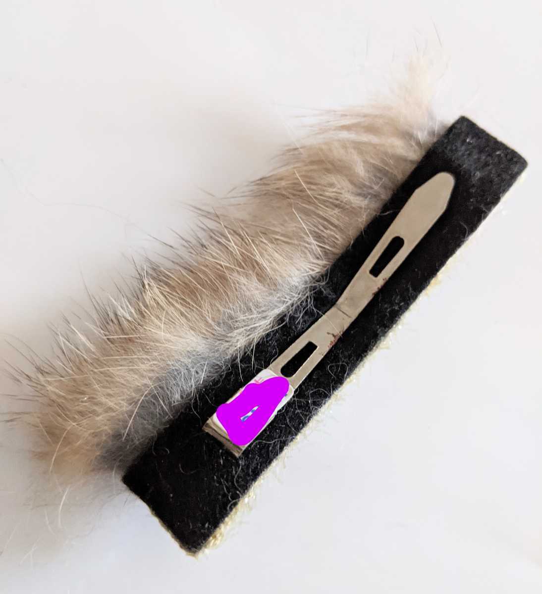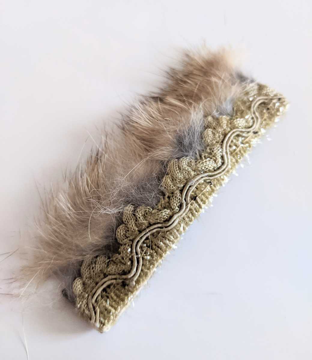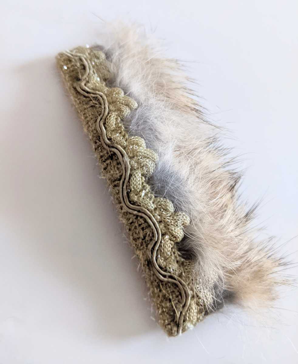 こちらは、ゴールドの刺繍と毛皮の付いたヘアピンになります。