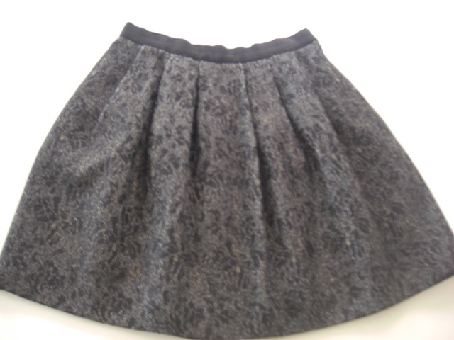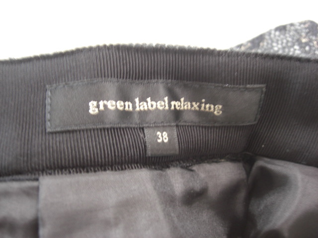 美品グリーンレーベルリラクシング 金糸花柄上品スカート黒38