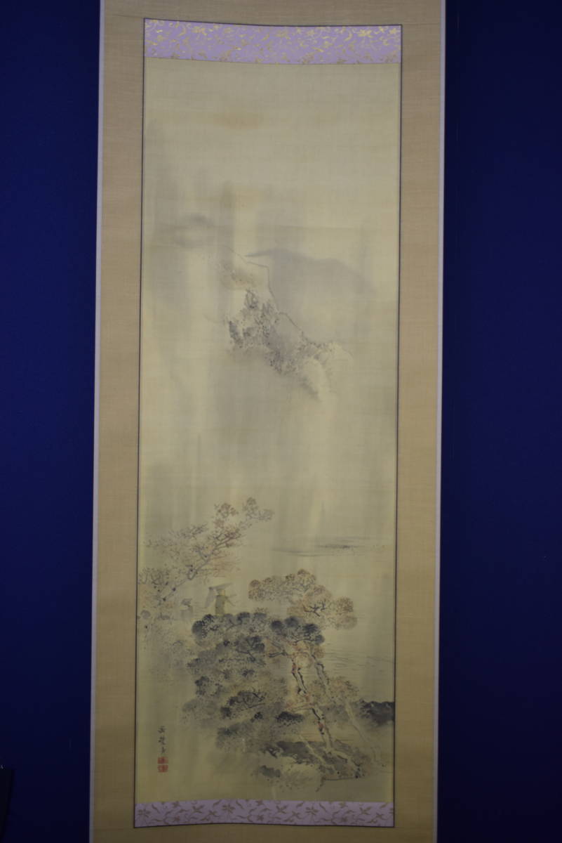 【真作】//岡本豊彦/山水人物図/布袋屋掛軸HH-855