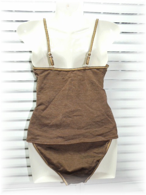 | =委託品= 中古品はクリーニング又はホームクリーニング済です。 新品・未使用品については現状のお渡しとなります。 保管の際のシワがございます。 ■■商 品 ラ ン ク■■ A0新品・未使用品です。 A1訳アリ新品・未使用品です。 B0未使用品に近い中古品です。 B1目立ったシミ・汚れ等が無い一般的な中古品です。 B2使用感(ヨレ)・毛羽立ち等あります。 B3薄め・小さめのシミ・汚れ・傷等があります。 B4目立ったシミ・汚れ・傷等があります。 B5ジャンク品です。 *注:感じ方には個人差がございます。 【レベル:B1】 目立ったシミ・汚れ等見当たりません。 ≪タグ表示≫ サイズ:9号/M バスト:83 ヒップ:87-95 ≪平置きサイズ≫ 多少の誤差はご容赦下さる様お願いします。 身幅:約36cm 着丈:約28cm ウェスト:約28cm ヒップ:約31cm 着丈:約27cm ≪素材≫ ナイロン80% ポリエステル15% ポリウレタン15% ≪色・柄≫ ブラウン杢 肩ひも調整可能 付属パッド取り外し不可 ≪お願いとご注意≫ ・新品・未使用品でも一度は人手に渡った物ですので完璧を求める方はご入札をご遠慮下さい。 ・お振込み手数料はご負担下さいます様お願いします。 ・仕事・家事の合間で作業をしておりますのでお急ぎの方のご入札をご遠慮下さい。 ・ご入金確認のタイミング(夜の確認)により発送が1~2日程遅れる場合がございます。 ・頂いた個人情報はお取引後すみやかに削除させて頂きます。 ・土日祭日の発送は郵便局都合によりお休みします。 ・フラッシュやPC環境により色が違う場合がございます。 ・喫煙者おりません。ペット(猫)がおります。 ・クリックポストは厚さ3cm未満と決められておりますので圧縮袋での発送になリます。そのためパッドのへこみ等ございますので、気になる方はレターパックプラスかゆうパックでの発送をお勧めします。 ・お品物がお手元に届きましたら速やかに受け取り完了をお知らせ下さい。 ・評価はご指示がない限り商品受け取り完了のお知らせ後にさせて頂いております。 ≪不要の方はお手数おかけしますがメッセージをお願いします。≫ | |||
