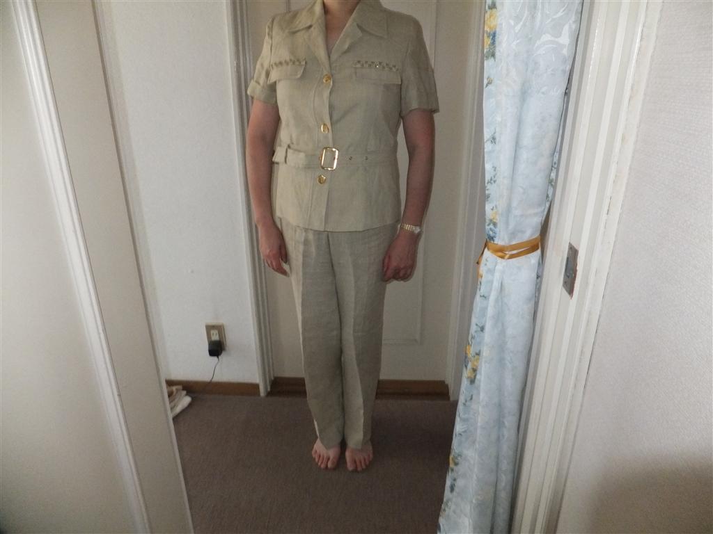 海外で購入したイタリア製のパンツスーツ2点セット、ベージュとエンジ色、日本サイズで9-11号サイズ、一回試着したのみですが、選択しています。ダメージは見当たりません。詳細は写真を参考に。クロネコヤマトの着払いでお願いします。ノークレームノーリターンでお願いします