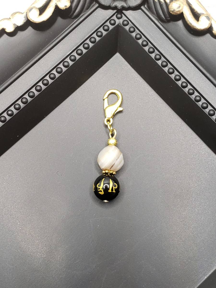 天眼石(アイアゲート)、梵字オニキスのデザインマスクチャームです。