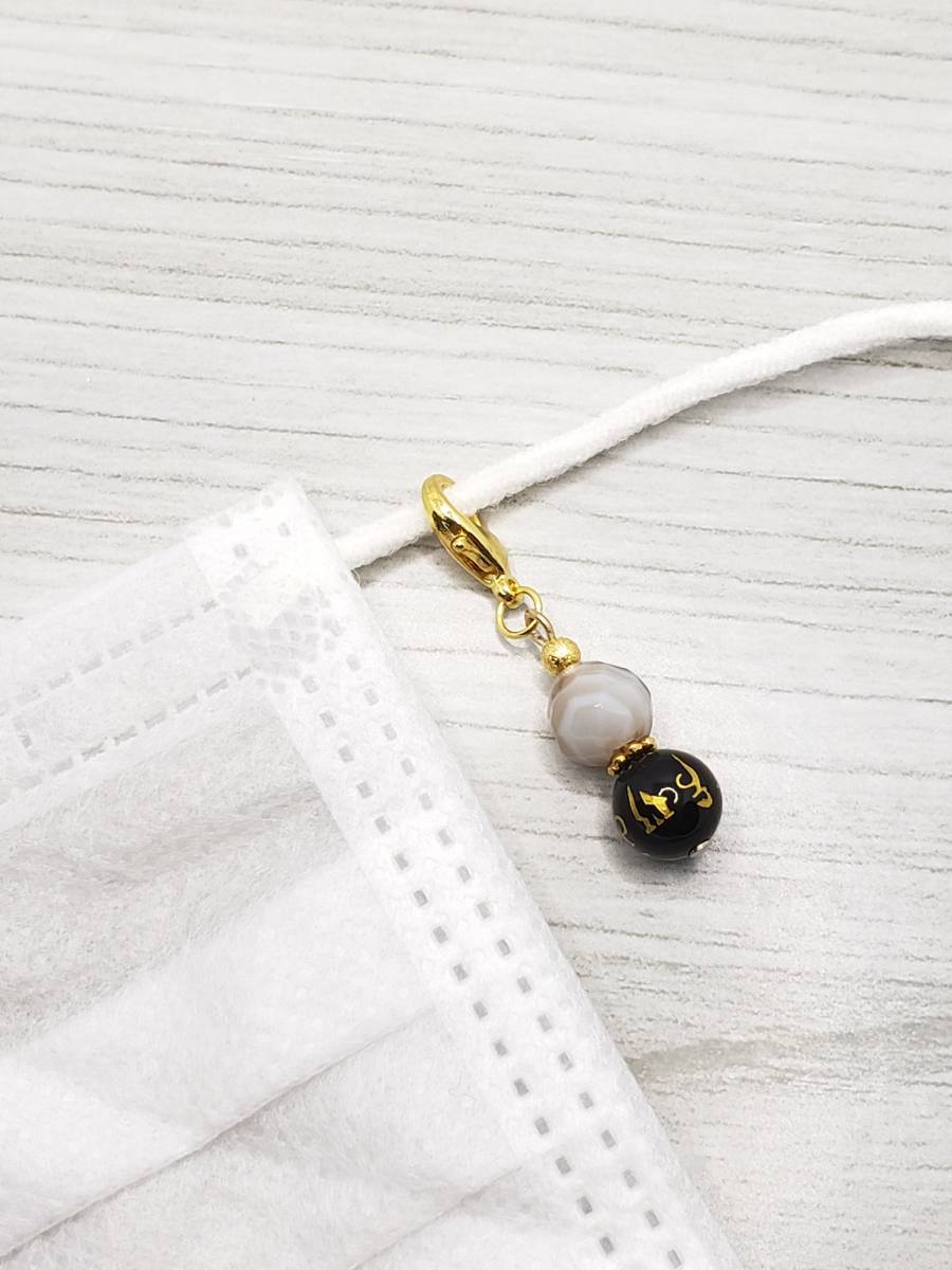 ★ハンドメイド マスクチャーム A302 天眼石 アイアゲート 梵字 オニキス ★